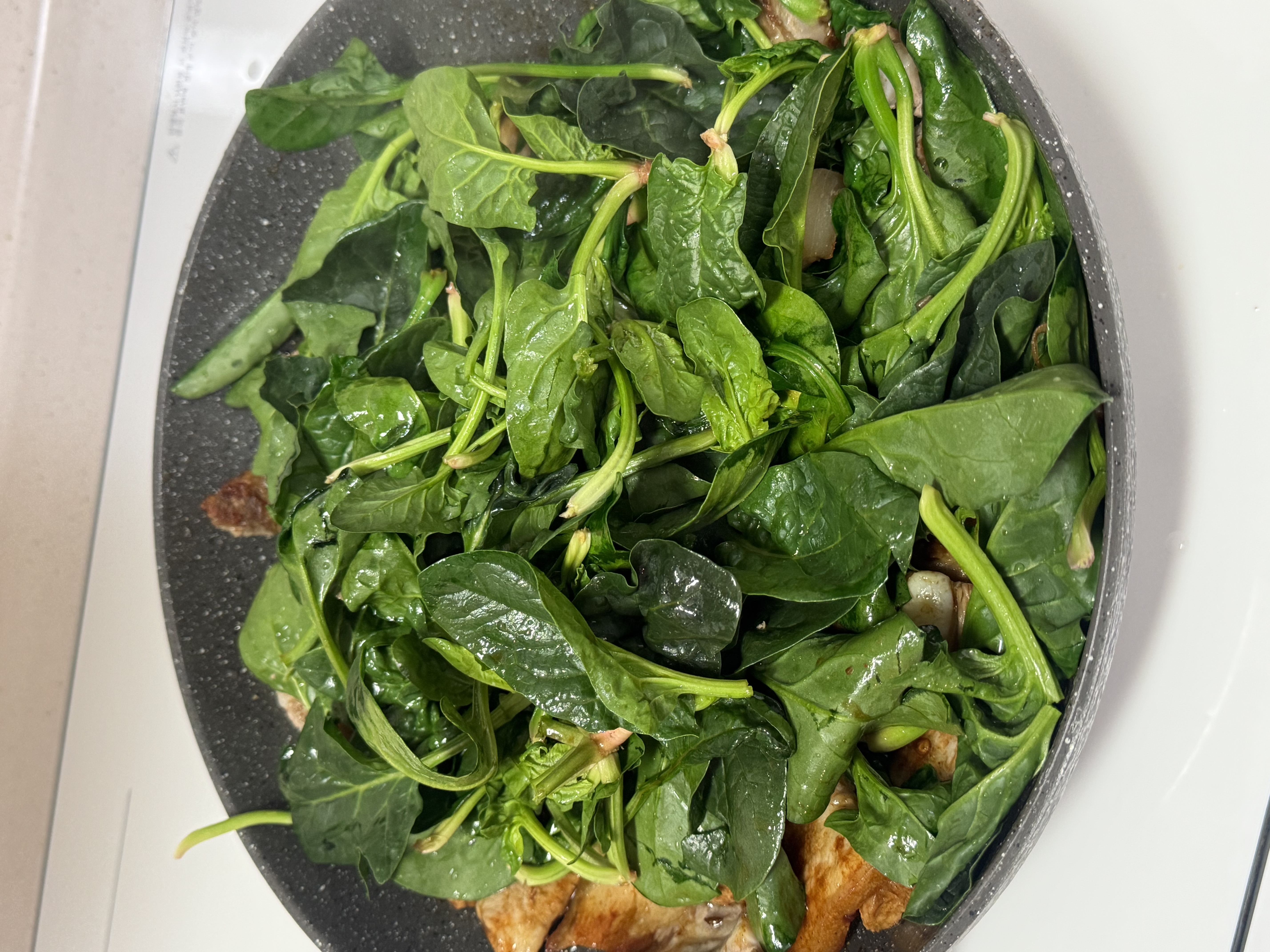 마지막으로 시금치를 넣어서 숨이 죽을 때 까지 소스와 버무려요