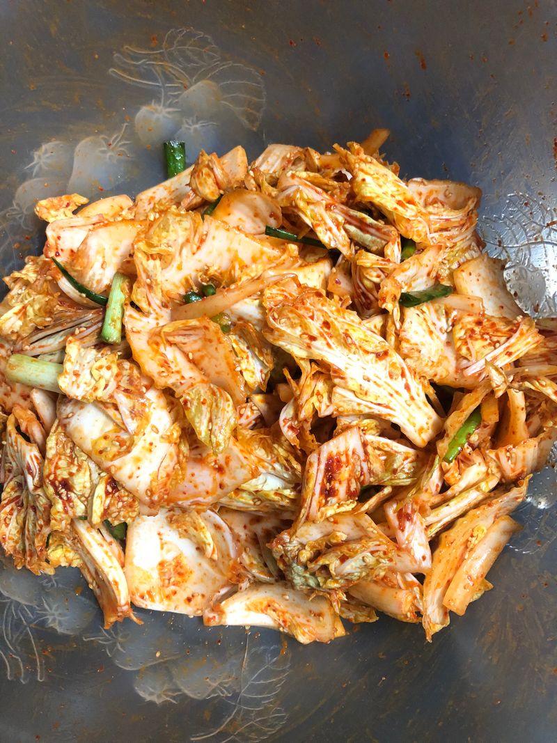 6. 배추에 겉절이 양념을 넣고 고루버무려주세요