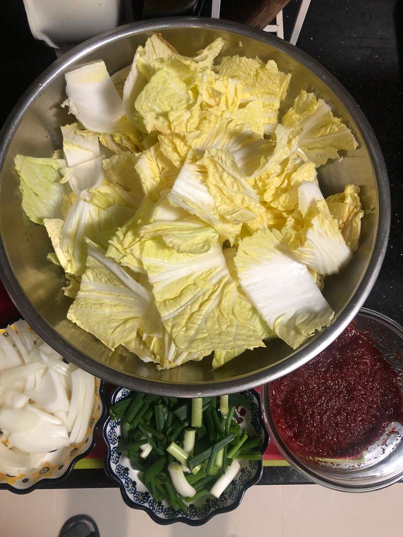 3. 배추는 먹기좋게 어슷하게 썰어주세요