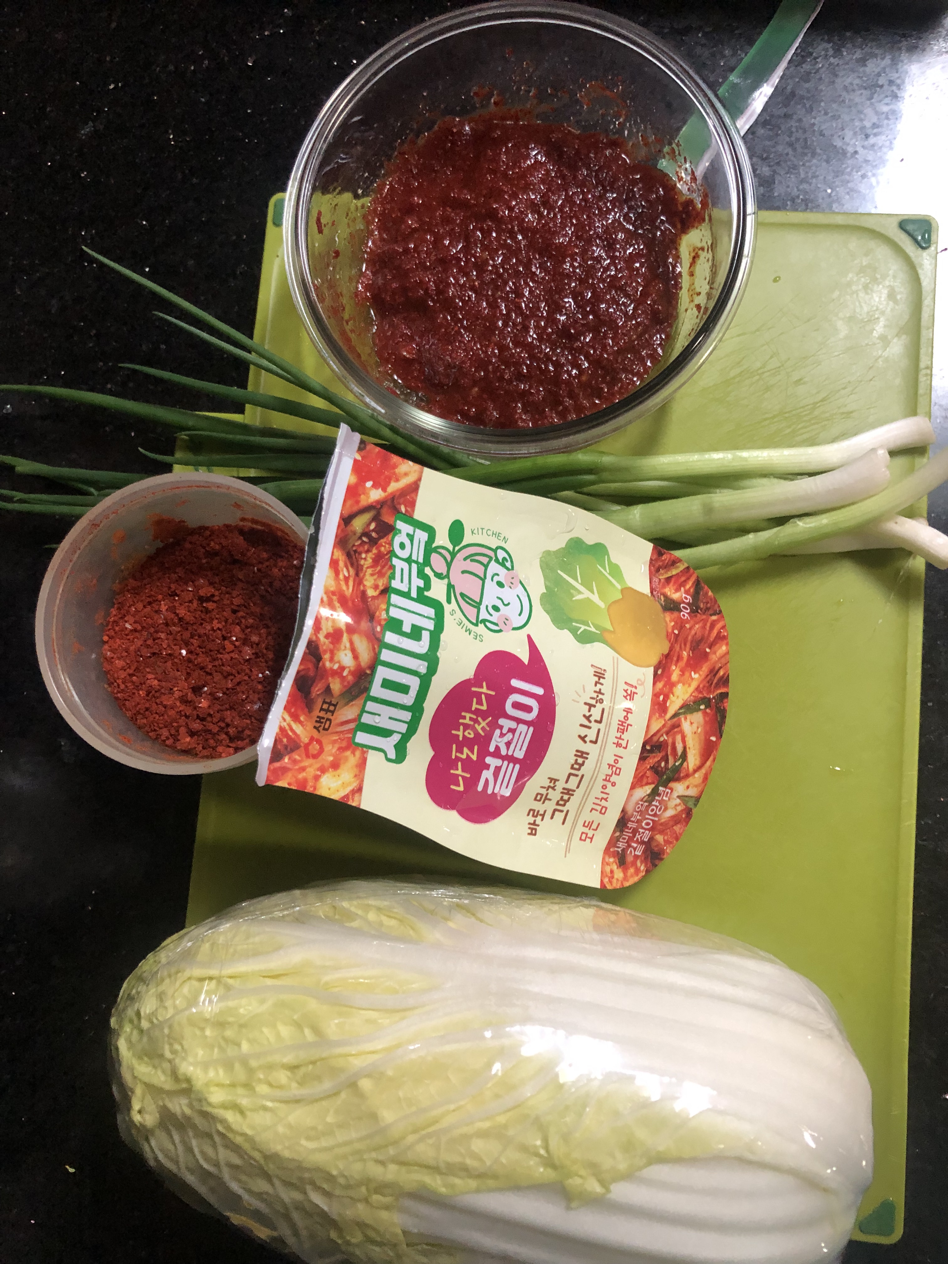 1. 새미네 겉절이 양념에 고추가루(5스푼)를 넣고 섞어서 불려주세요(5분정도)