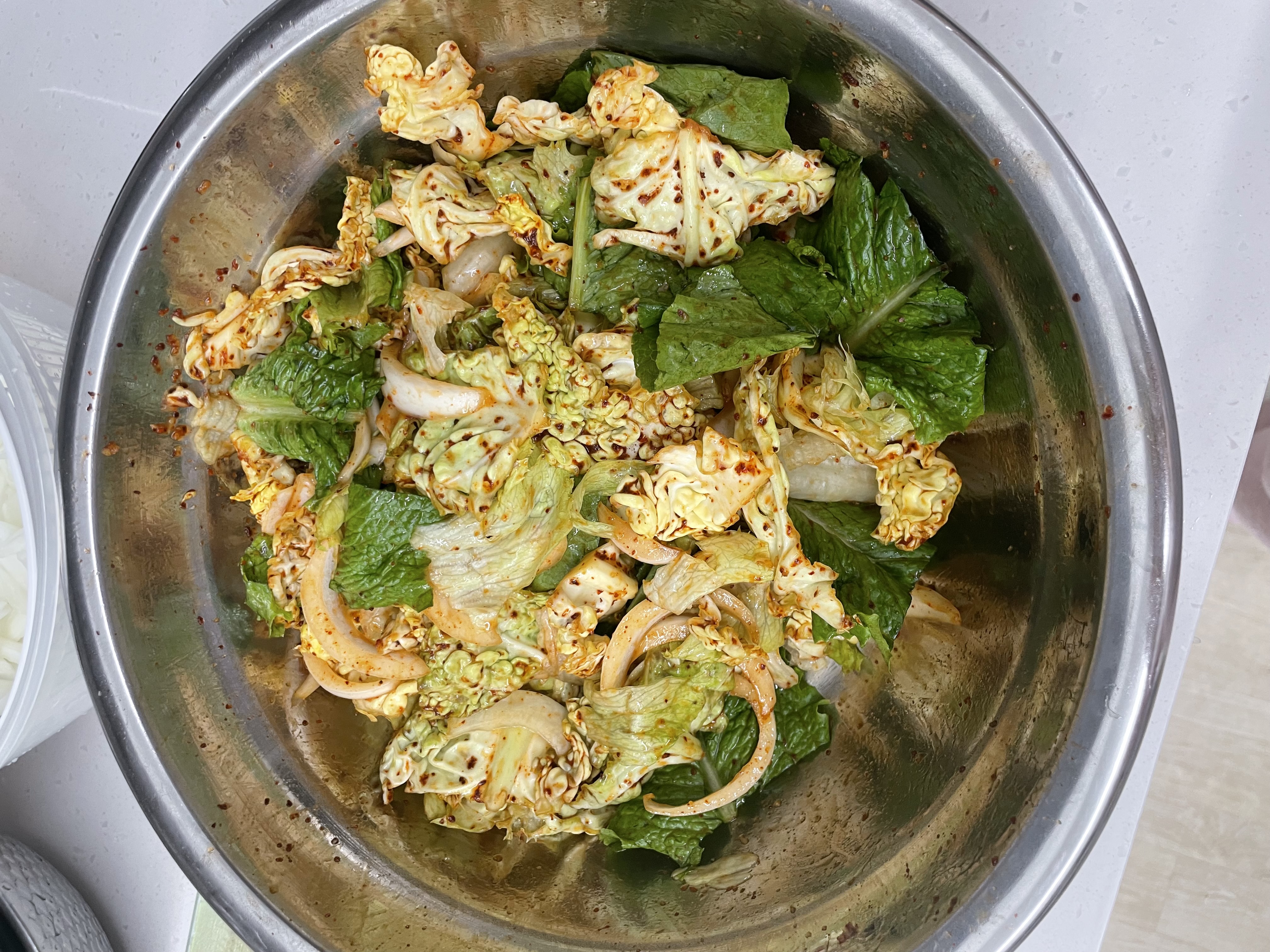 알배추가 없어서 양배추와 조금의 양상추,상추를 넣고 버무려 보기로 했어요!