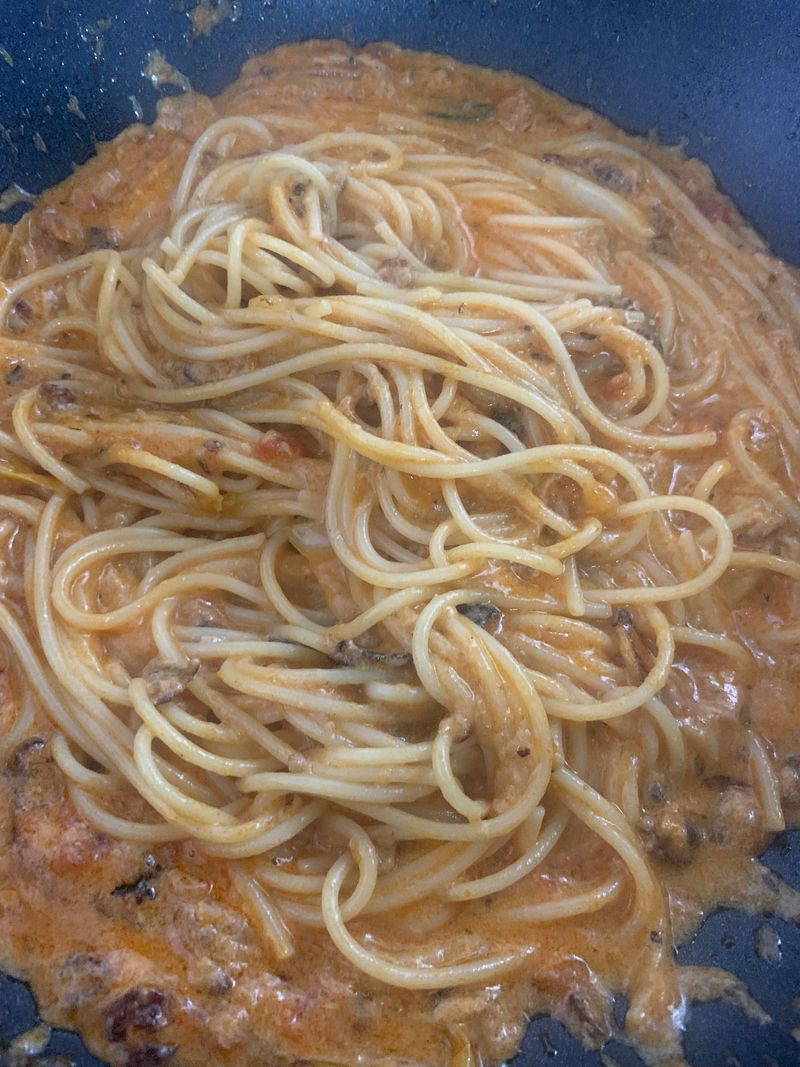 그리고 채소들에 소스를 넣고 파스타면 열심히 넣어서 쫄려주니까 아주 맛있는 냄새가 났다!