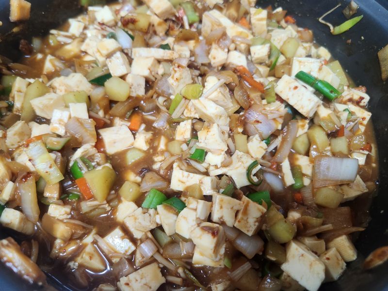 감자, 양파, 버섯, 파 두부 가득 넣으니 강된장 양이 배가 되네요.