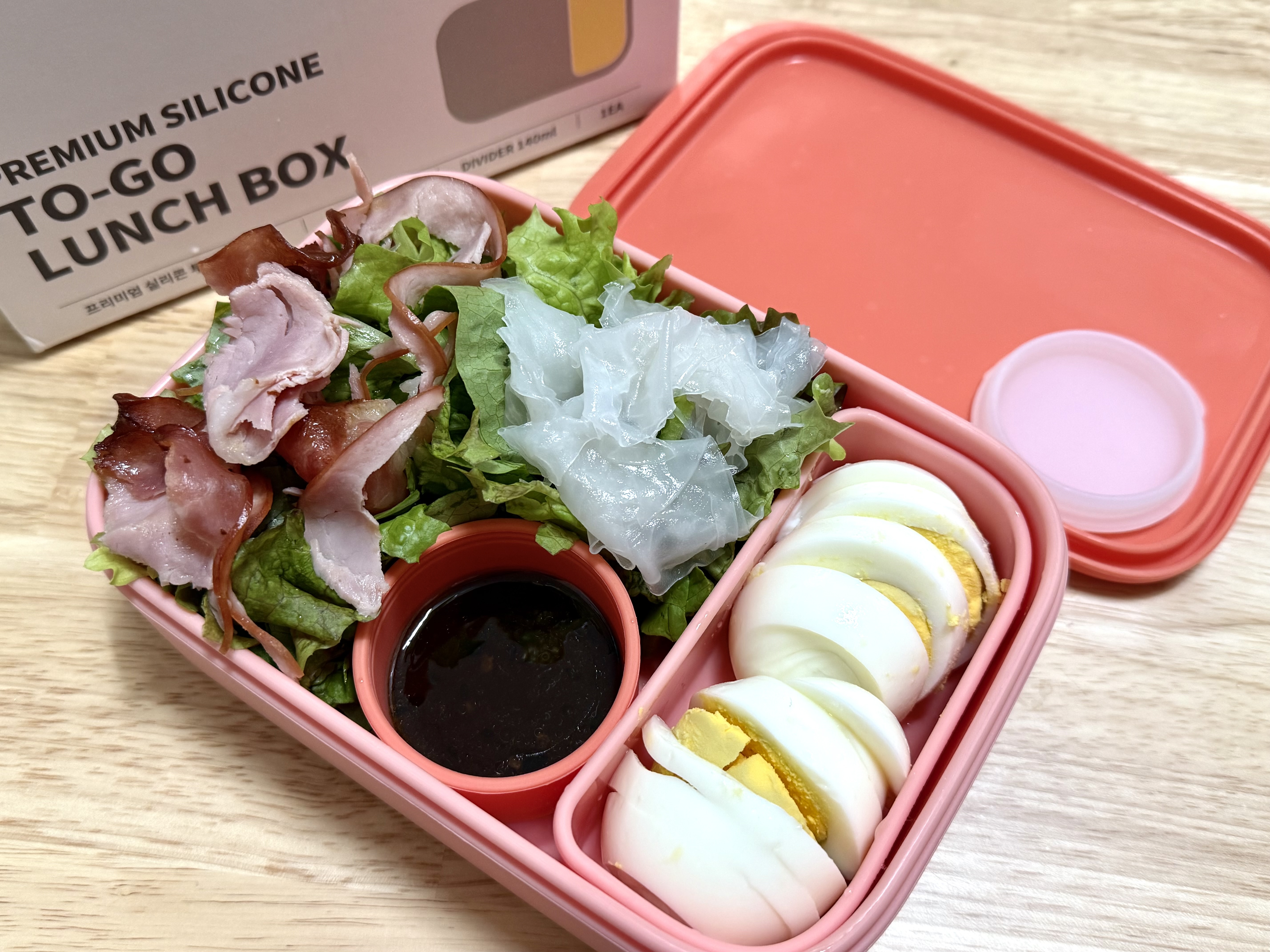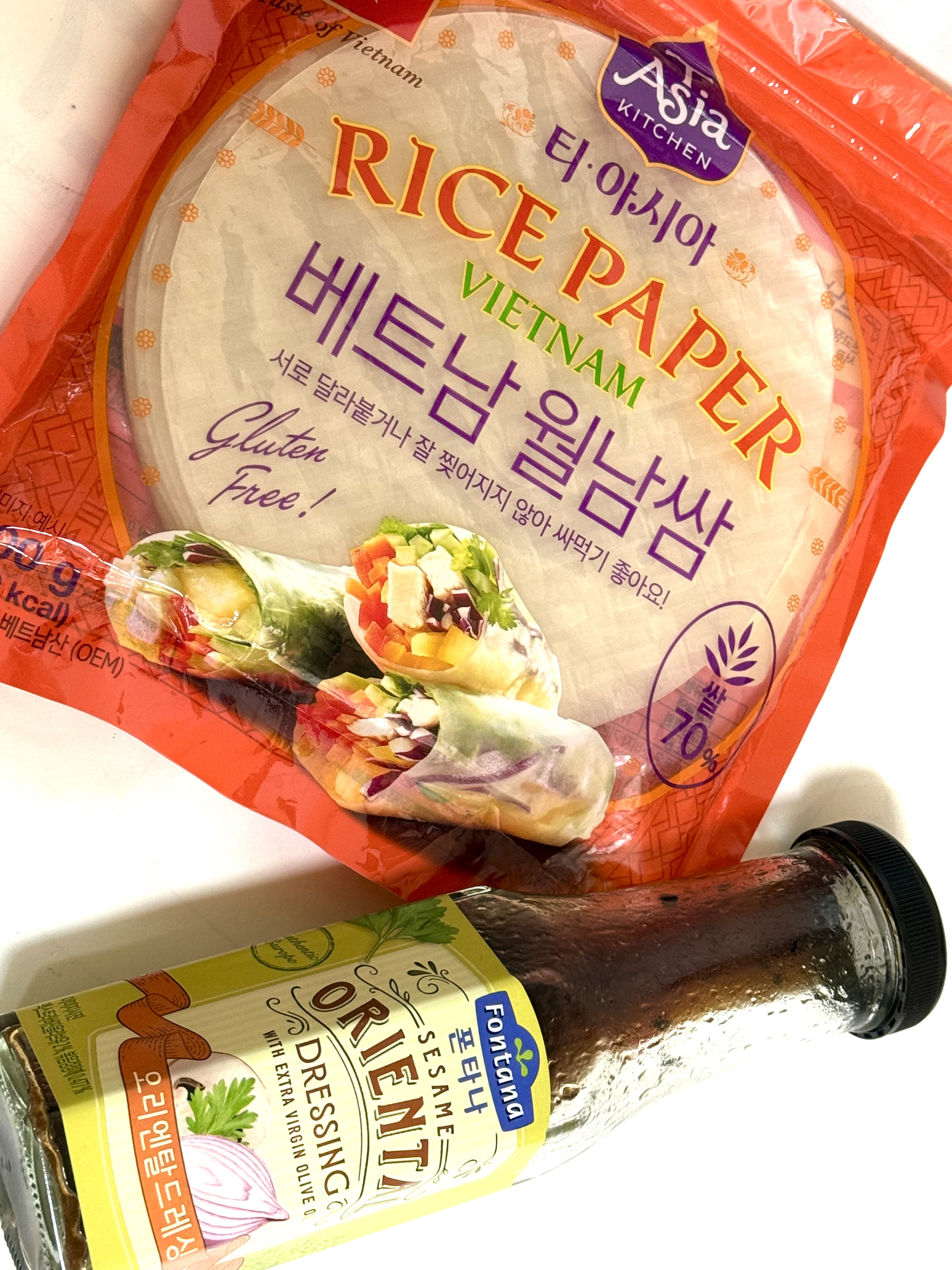 과일 외에도 라이스 페이퍼로 과하지 않은 탄수화물을 챙기면서 냉장고 안에서 무르거나 할 채소들과 애매하게 돌기 쉬운 제품들을 적절히 섞어 샐러드를 하면 단백질과 지방도 맞춘 탄단지 샐러드 완성입니다