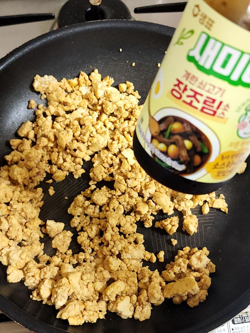 두부는 수분기 날려 볶다가 새미네 장조림양념으로 볶아줬어요.