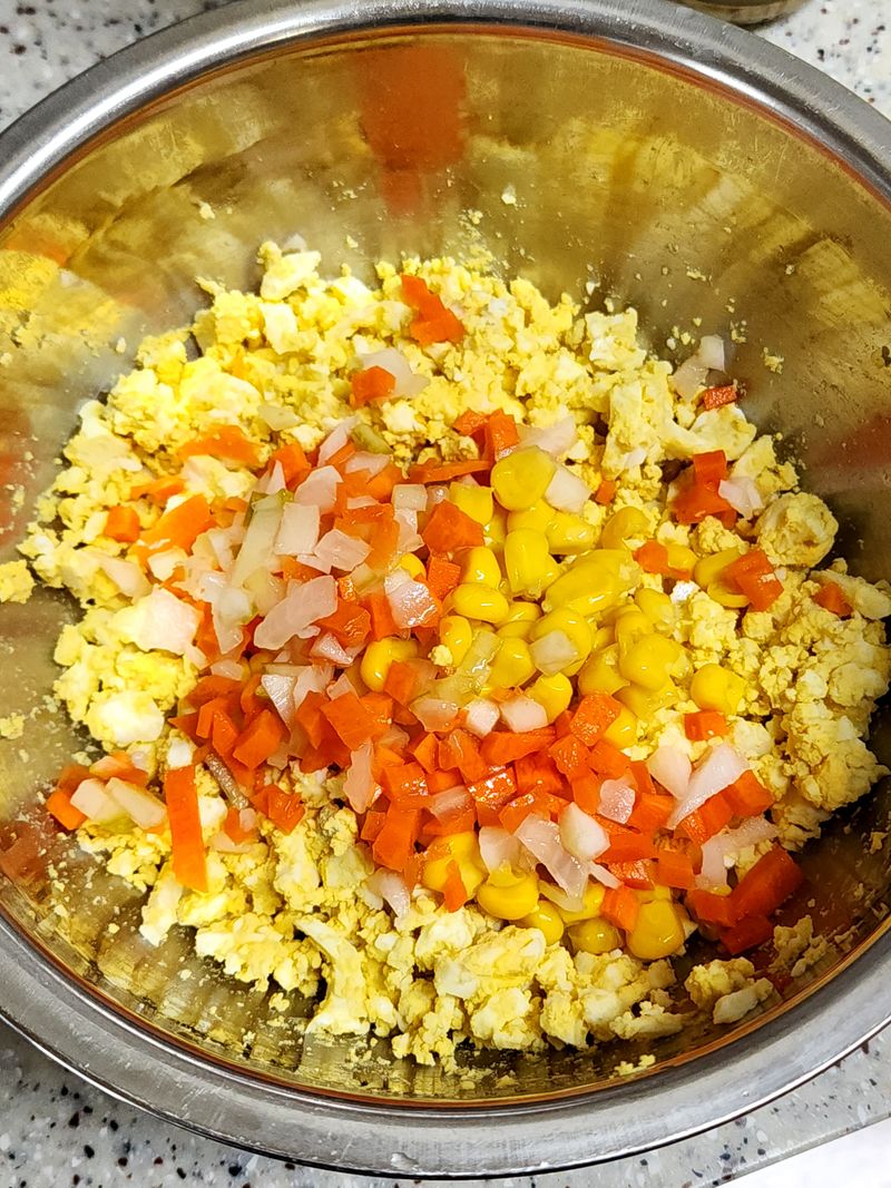 다진피클 2큰술, 옥수수 넣고
