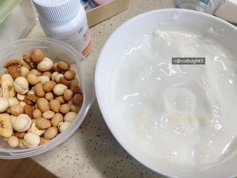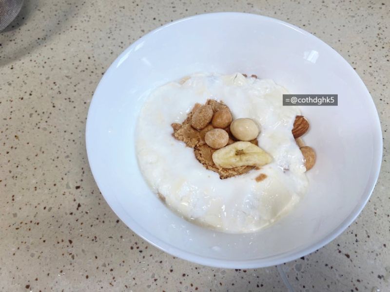 견과류와 그래놀라: 오독오독 씹는 맛이 좋은 견과류나 통곡물 그래놀라를 올려 먹으면 식감도 풍부해지고 포만감도 높아져요. 아침 식사 대용으로 딱입니다!