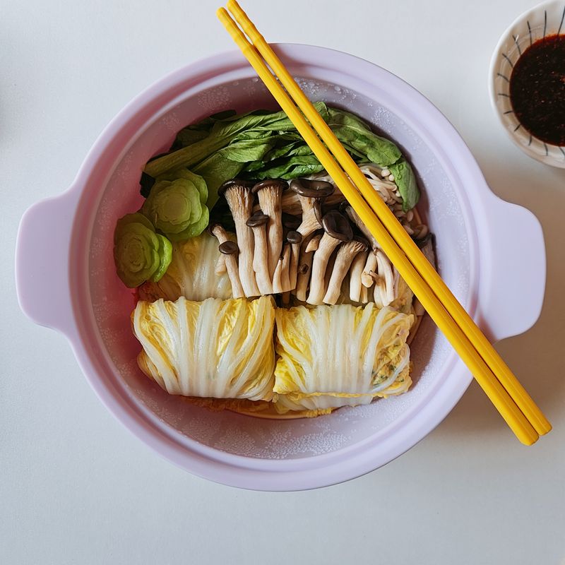 렌지로 쪄주면 간단하게 배추만두와 채소찜까지 완성!