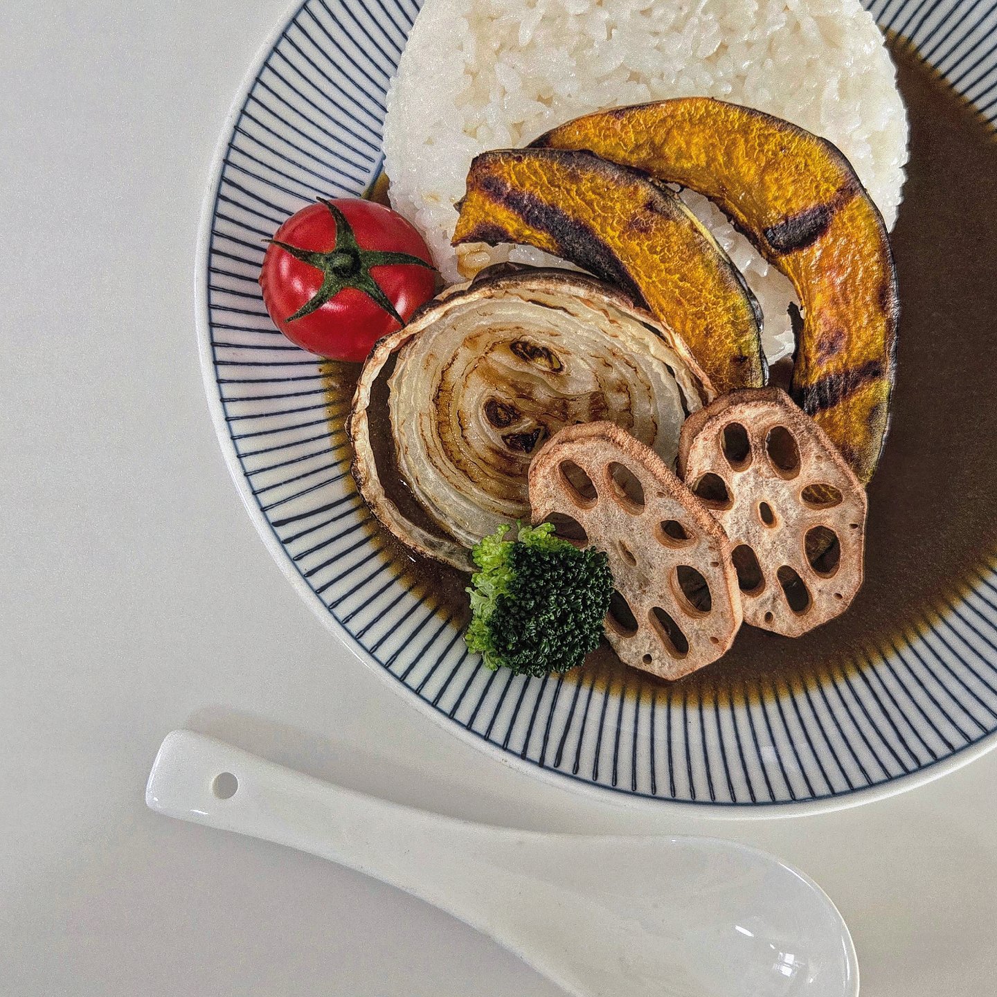 채소를 저렇게 구워서 올리는 평범한 카레가 너무 멋진 한끼가 되네요.