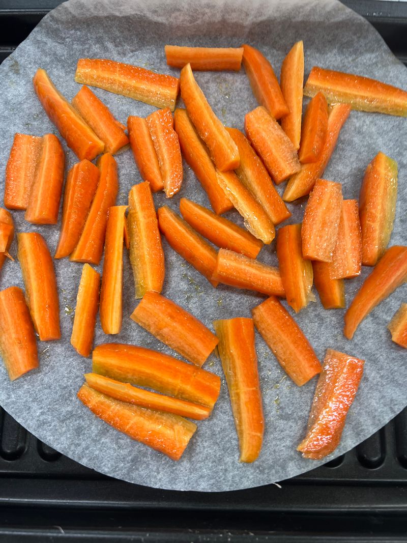 너무좋아하는 당근! 고기 구워 먹을 때 항상 야채도 같이 구워 먹는데 고기는 먹고 싶지 않고 갑자기 구운 야채가 먹고 싶어서 당근에 올리브유 뿌려서 구워 봤어요. 달콤하고 당근 두 개만 만들엇는데 순식간에 없어졌네요 다음엔 좀 더 많이 만들어 봐야겠어요.