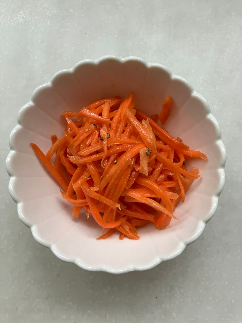 당근라페 레시피를 따라서 집에 있는 당근으로 당근라페를 만들었어요. 쉽고 간편하면서 너무 맛있어서 아주 만족해요. 그냥 먹어도 좋고 샌드위치, 김밥에도 어울려서 좋아요.