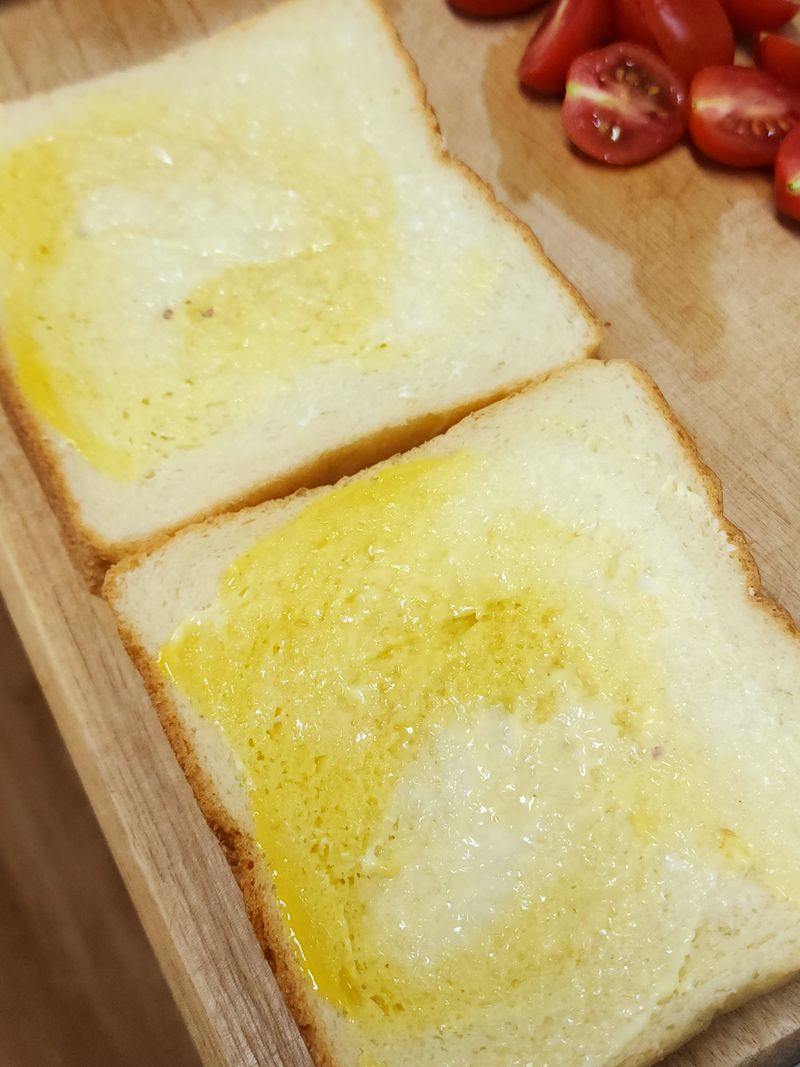 식빵에 마요네즈+허니머스타드 바르고 치즈 당근라페 계란 토마토 상추 올려주면 끝