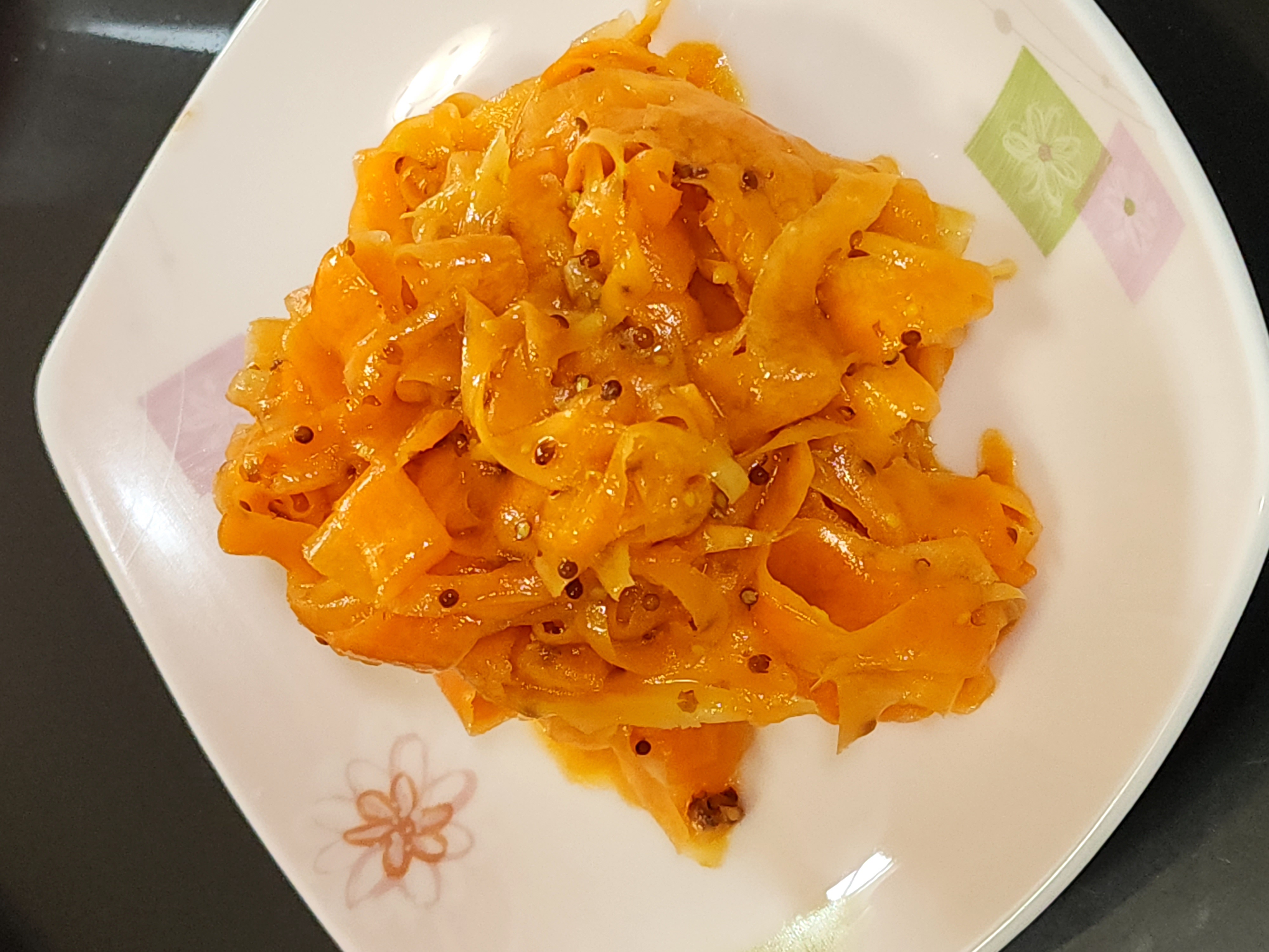 절여진 당근에 올리브오일1, 식초1, 홀그레인머스타드0.5, 알룰로스0.5, 후추가루 조금