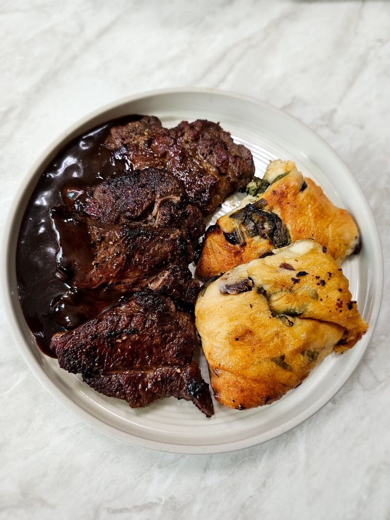 스테끼에 버터를 잔뜩 썼으니