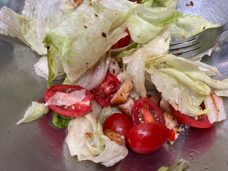 토마토에 상추, 치커리, 양상추 등의 채소를 기본으로 한 샐러드를 즐겨먹어요.