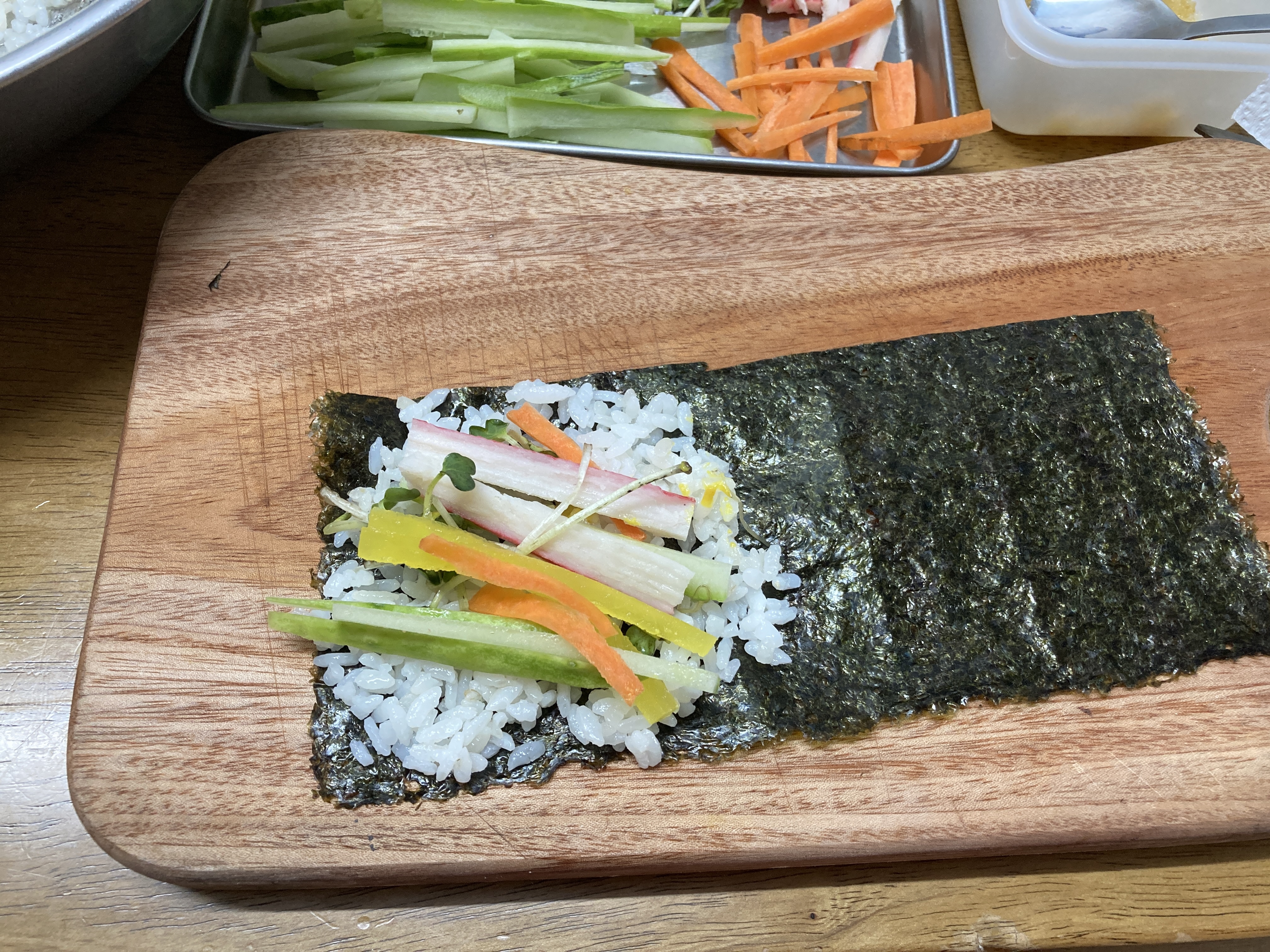 무순이 싸서 3개나 생겨서 어떻게 소비할까 하다가 만든 날치알 무순 김말이. 김밥용 김에 밥은 참기름, 소금, 깨로 간하고 무순, 단무지, 오이, 당근을 채썰어 넣고 돌돌 말아 날치알을 올립니다. 그리고 소스로는 연겨자에 간장, 식초, 올리고당, 물을 섞어 만들어 찍어먹으면 됩니다!