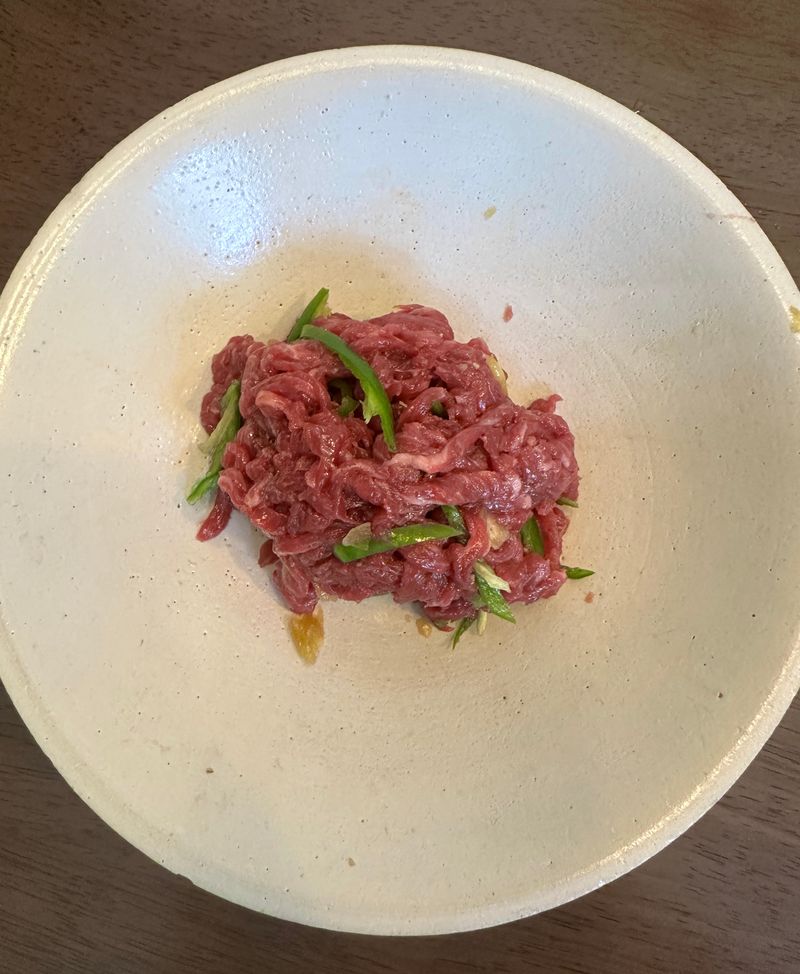 아이들이 좋아하는 육회! 사실 고기만 사서 단순한 양념(간장1+연두1+ 설탕1/2 +마늘+후추) 으로 무쳐주기만 하면 끝! 너무 맛있게 냠냠! 밥에 올리면 육회덮밥 완성이에요