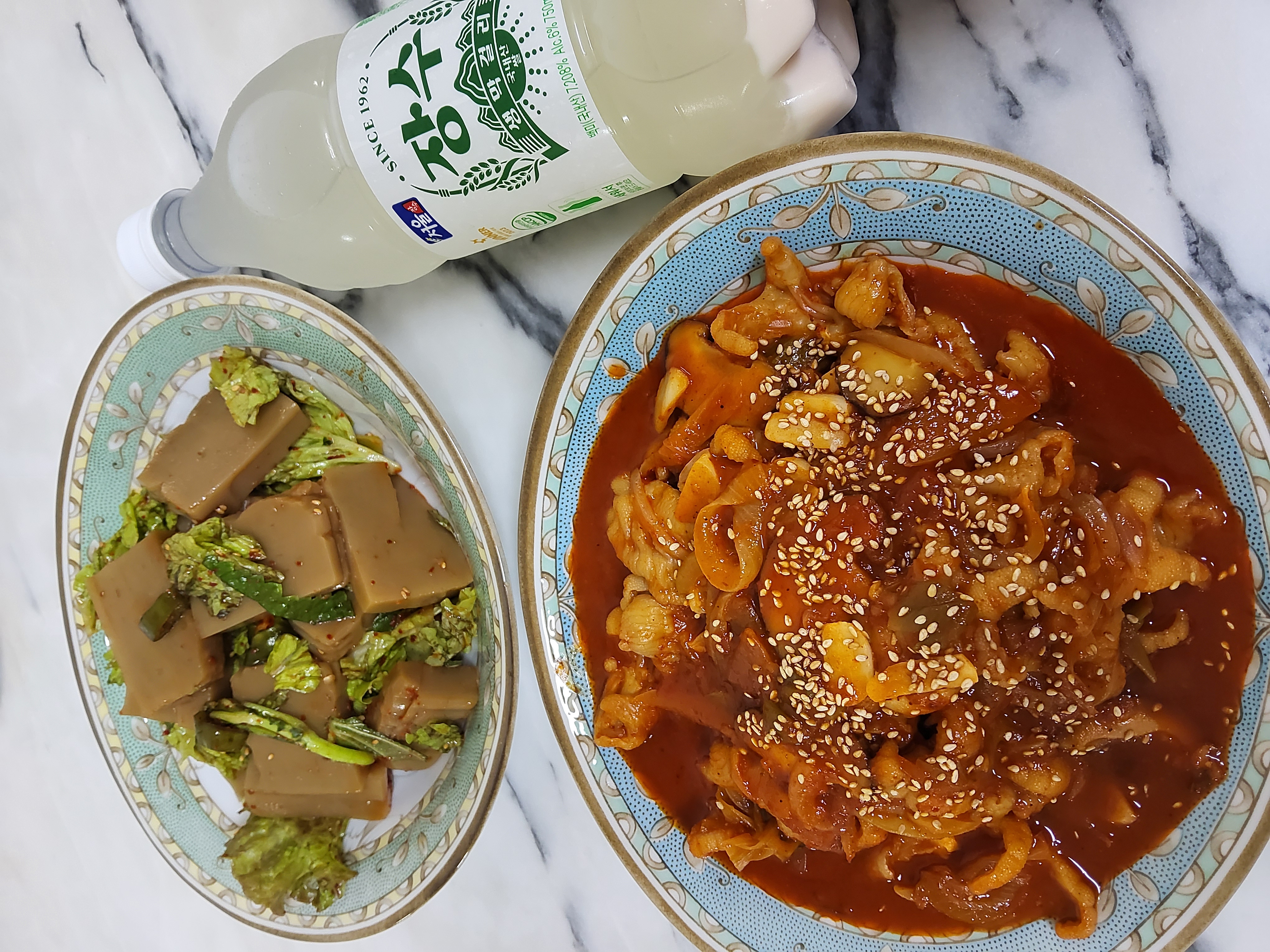 국물무뼈닭발과 야채도토리묵무침으로 피곤함을 덜어내고 힐링시간 소통의 시간도 가져보고 부모님과 한상차림에 안부를 묻고 건강하시라는 집밥 삶을 건강하게 이끌어가는 집밥이다.
