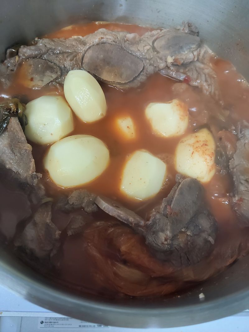 감자.소갈비.통묵은김치 넣고 연두넣고 팔팔 끓여 밥도둑 뚝딱
