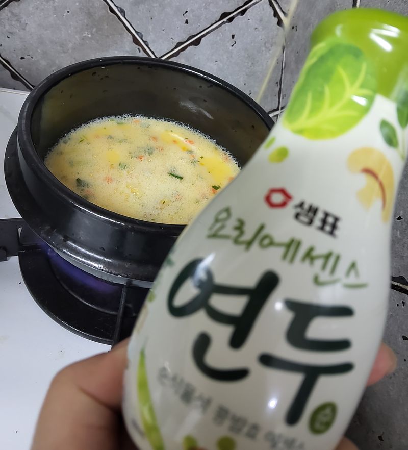 연두넣고 달걀.물 넣고 뚝배기에 달걀찜 뚝딱