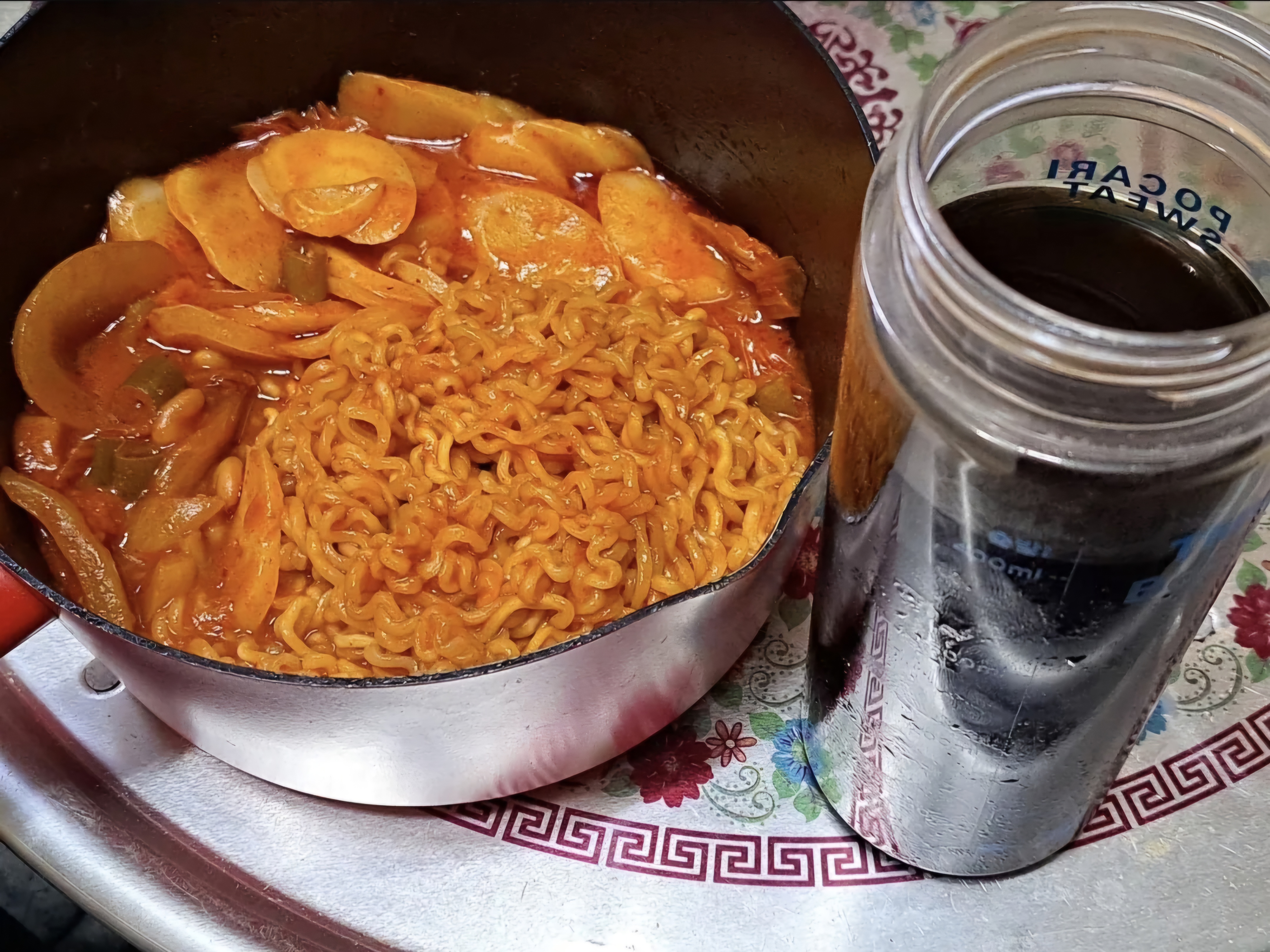 반값에 주워온 4천 부찌에 어묵 천원어치 추가 포함된 빈스가 없으면 토마토소스나 케첩을 한숟가락 빈스가 있지만 소스도 반숟갈 추가 사리면은 담날 떡국떡 넣고 부대라볶이