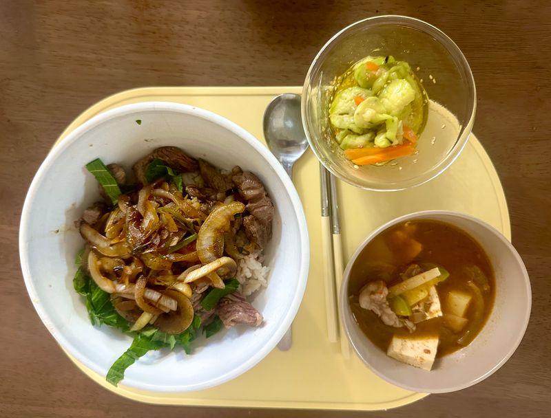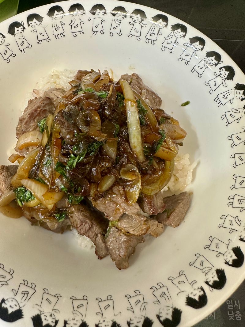 스테이크 덮밥 고명은 어떻게 하셨나용 ㅎㅎ!?