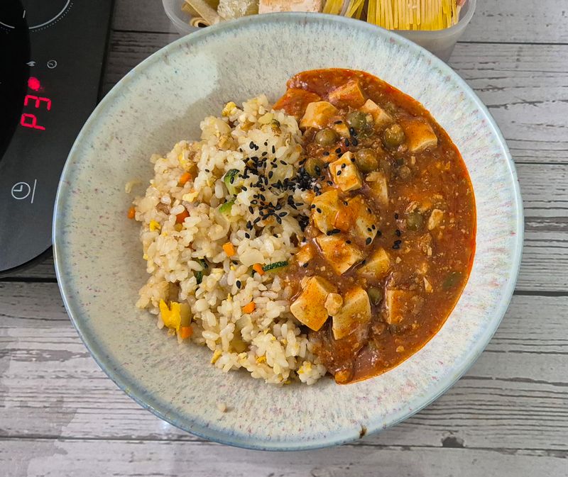마파두부가 짭쪼름해서 볶음밥엔 간은 최소화했더니 간이 딱 맞고 맛있었어요😆