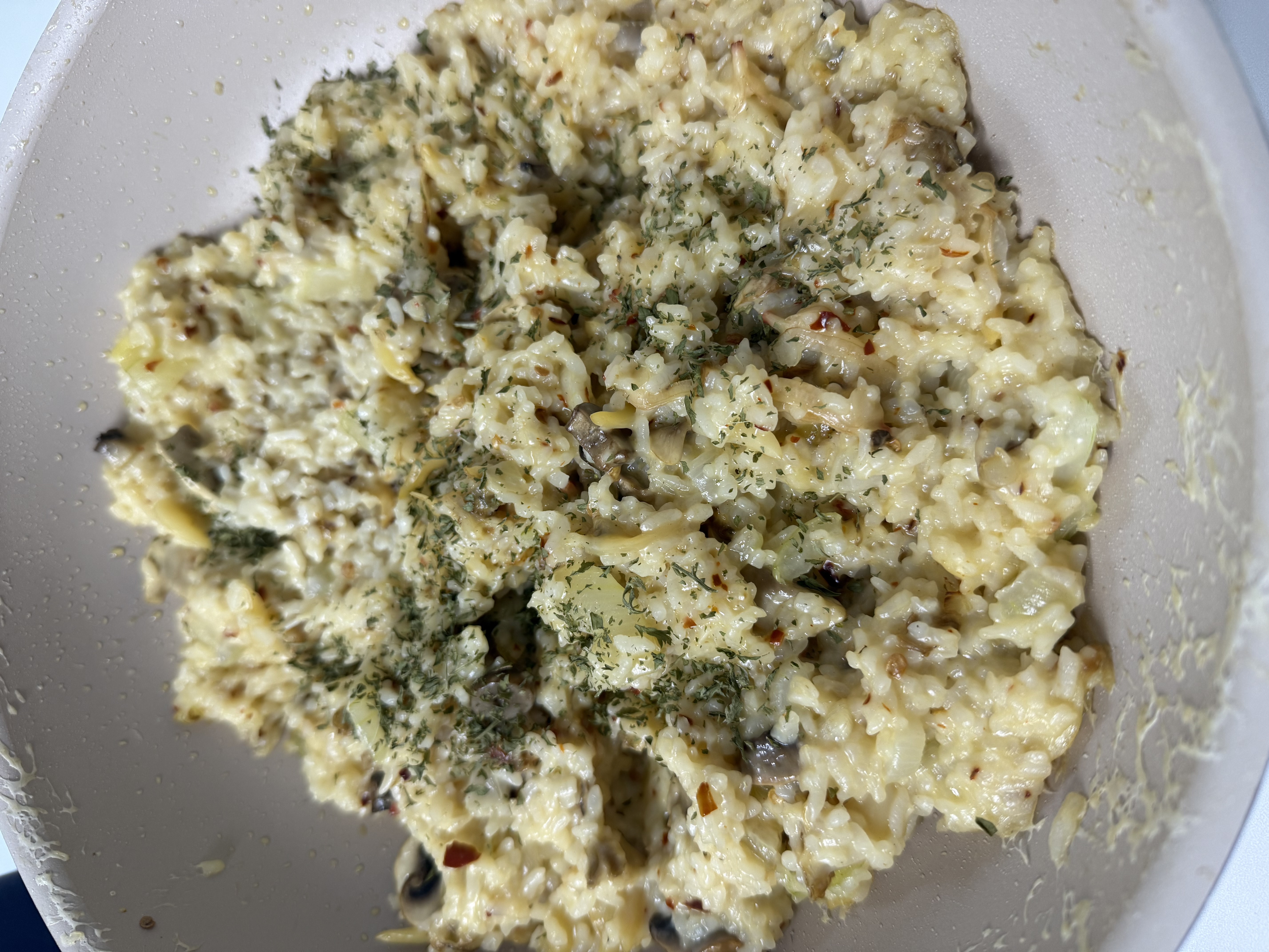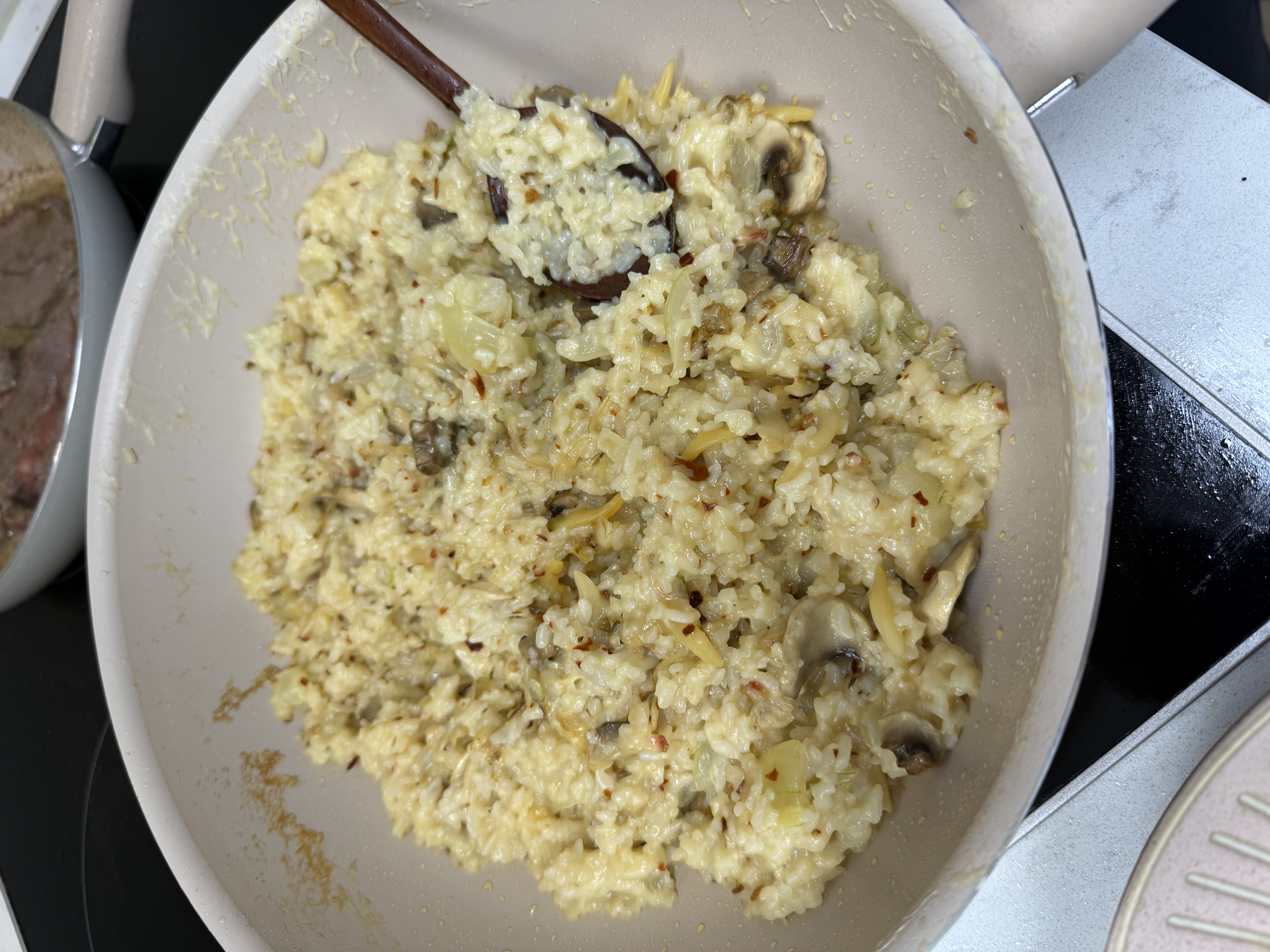 잘 섞어서 꾸덕하게 익히면 야매 리조또가 완성됩니다 😅