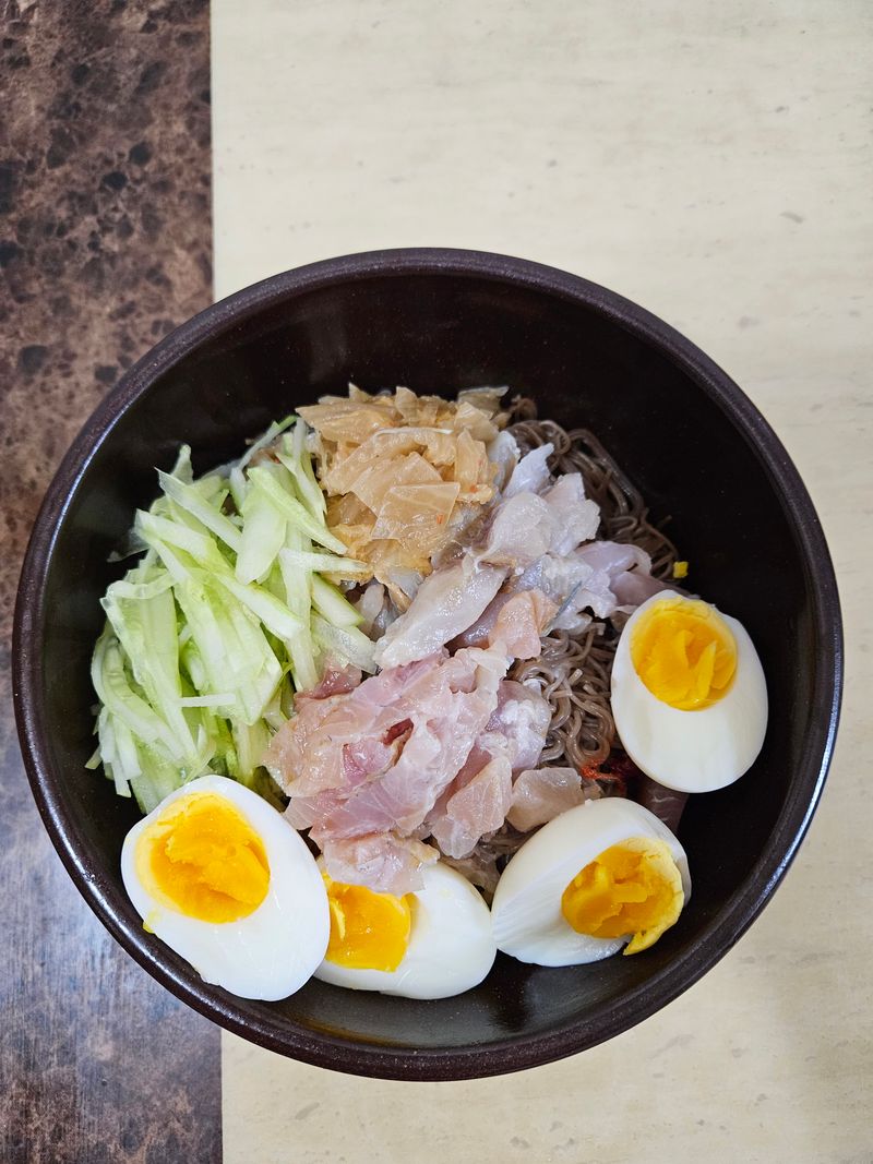 냉면을 많이 만들어먹는데, 이것 저것 연구하다 가장 맛있는 레시피에 정착했어요^^