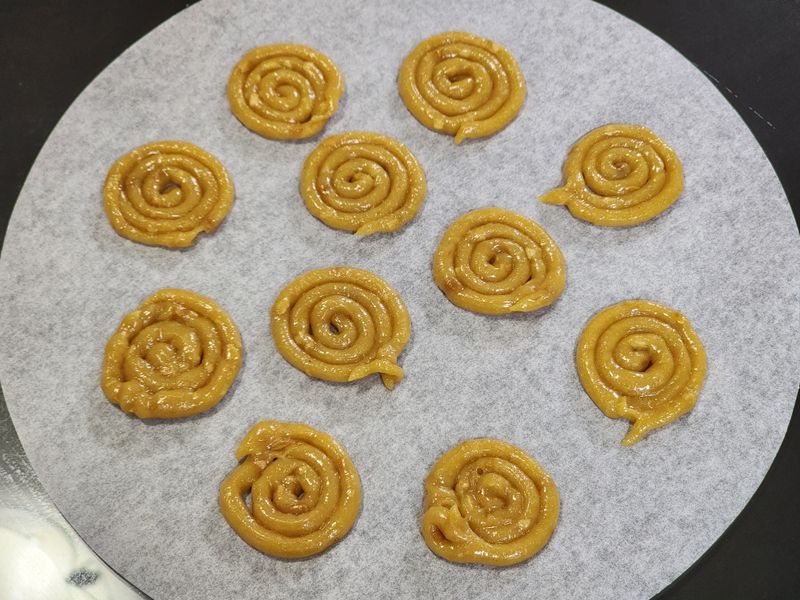 잘 섞어준다음 짤주머니에 넣어서 잘 짜 준다음