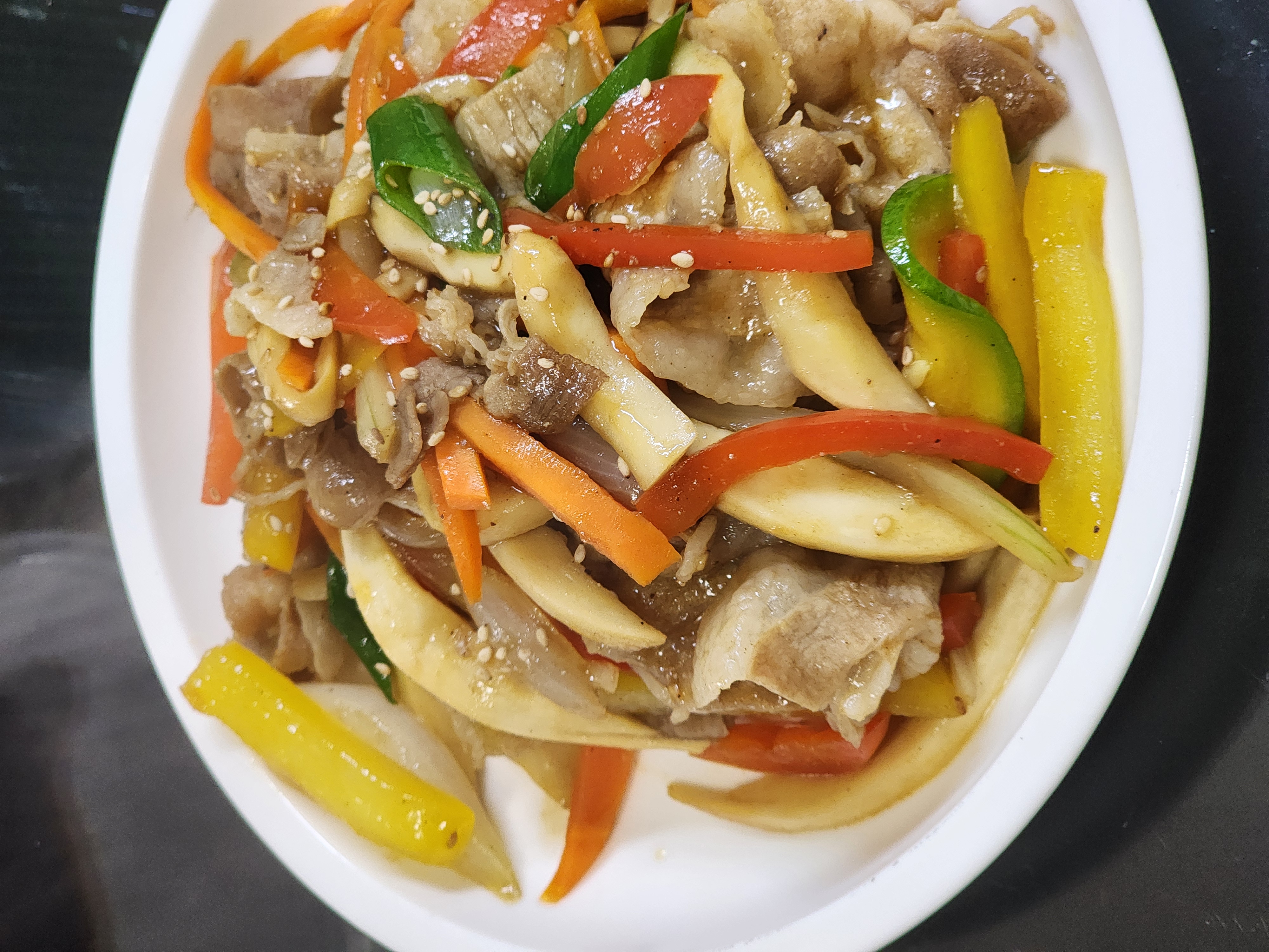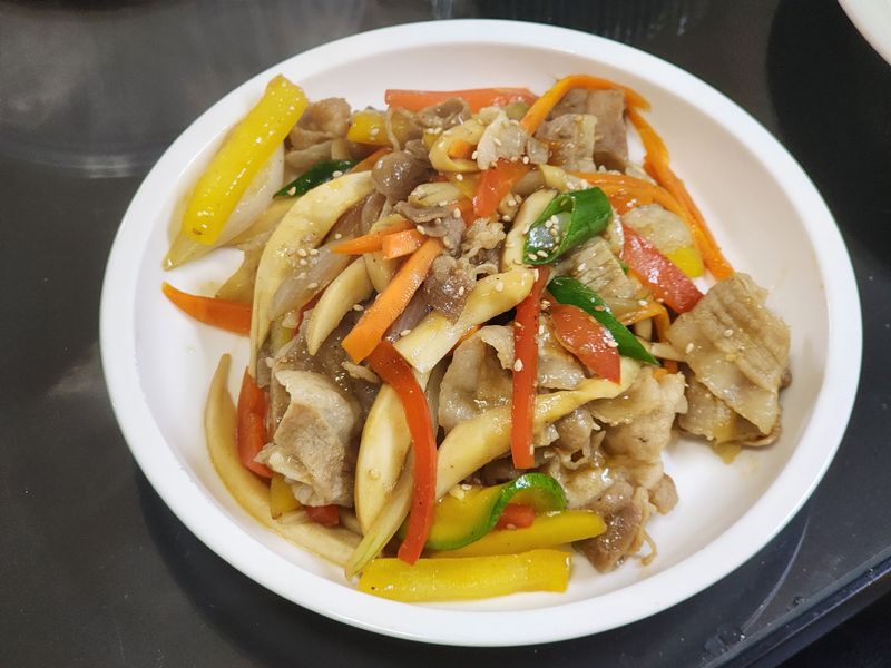 냉장고 파먹기에 좋은 대패삼겹야채볶음 당면없이 잡채느낌 내기 좋고 야채 고기 골고루 먹을 수 있어서 좋고 너무나 간단해서 좋은 메뉴네요. 고추잡채느낌도 물씬 납니다. 냉장고파먹기에도 더없이 좋은 메뉴입니다. 다른 간 많이 할 필요도 없고 연두 1~2스푼이면 완성입니다.