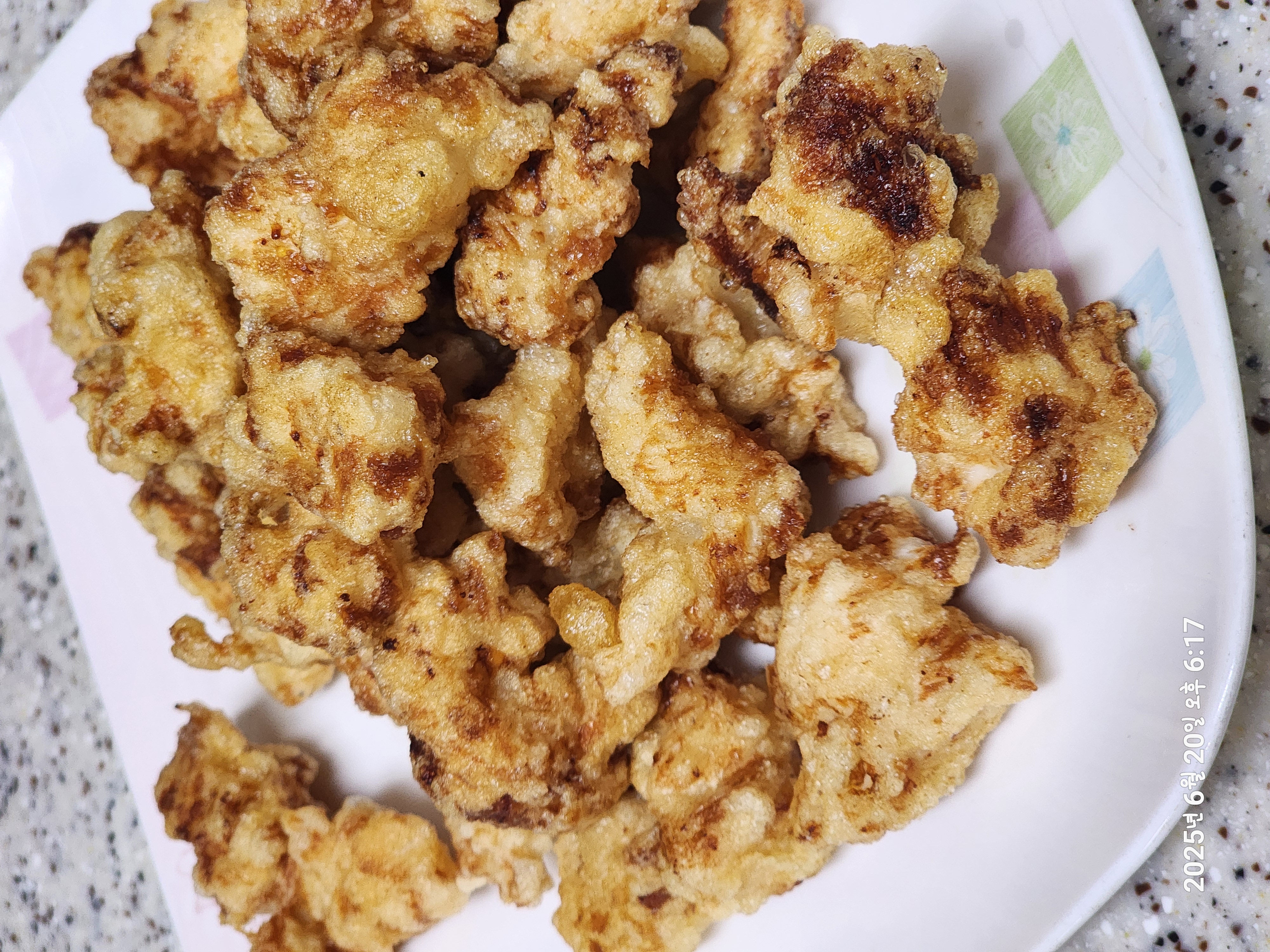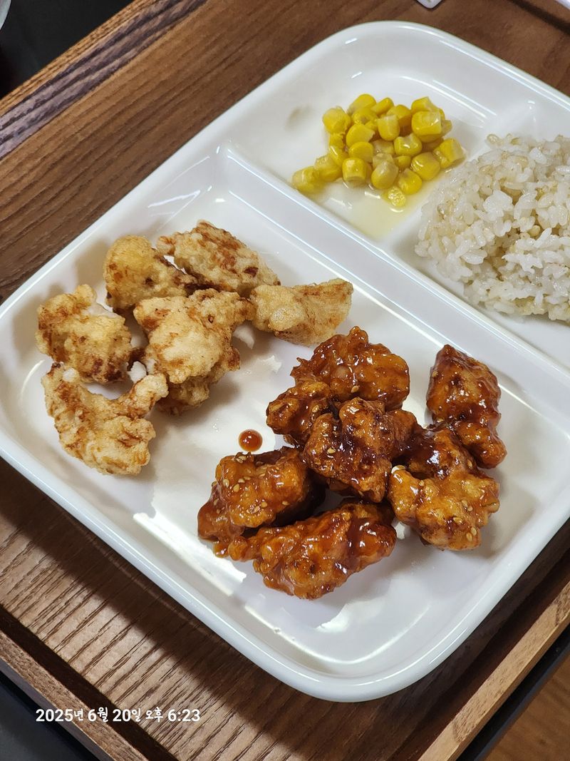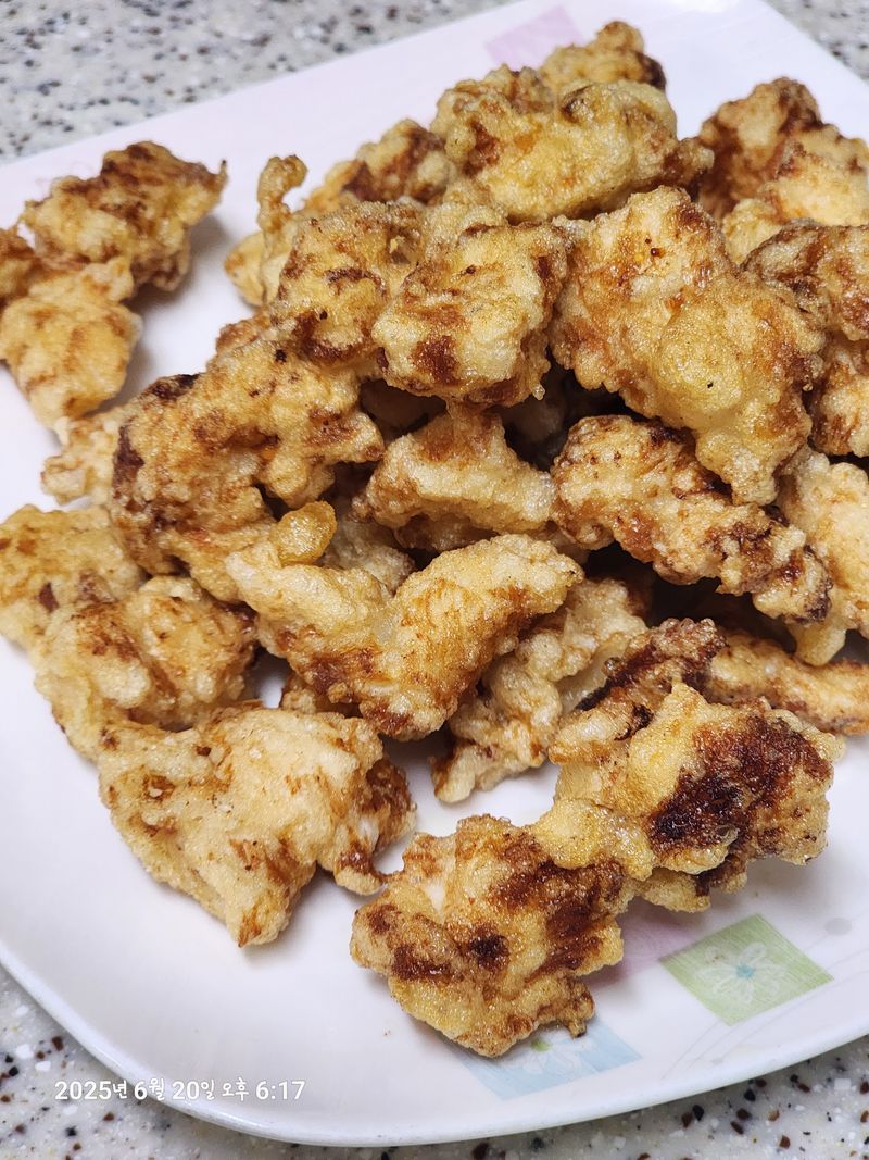 집에서 튀겨주는 홈메이드치킨 닭안심 사다가 녹말옷 입혀서 기름에 노릇하게 튀기고 반은 후라이드로 반은 양념으로 만들어준 홈메이드 치킨 금방 튀긴 치킨만큼 맛있는게 있을까요 깨끗한 기름으로 맛있게 튀겨서 아이들이 정말 잘먹어요.