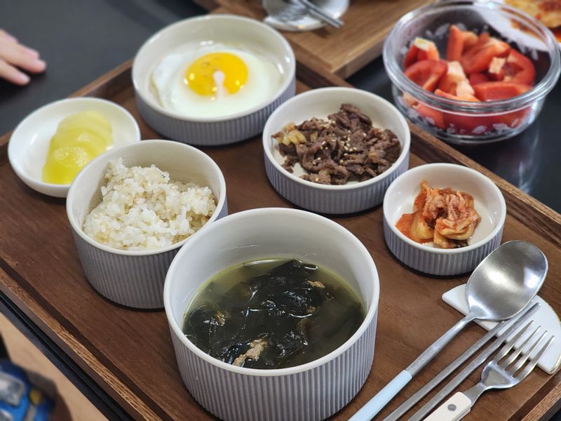 실패없는 메뉴로 구성한 초등밥상 미역국과 불고기 계란후라이 언제나 실패없는 메뉴들입니다. 언양불고기 스타일로 바싹 구웠더니 맛있다고 진짜 잘먹었던 날.