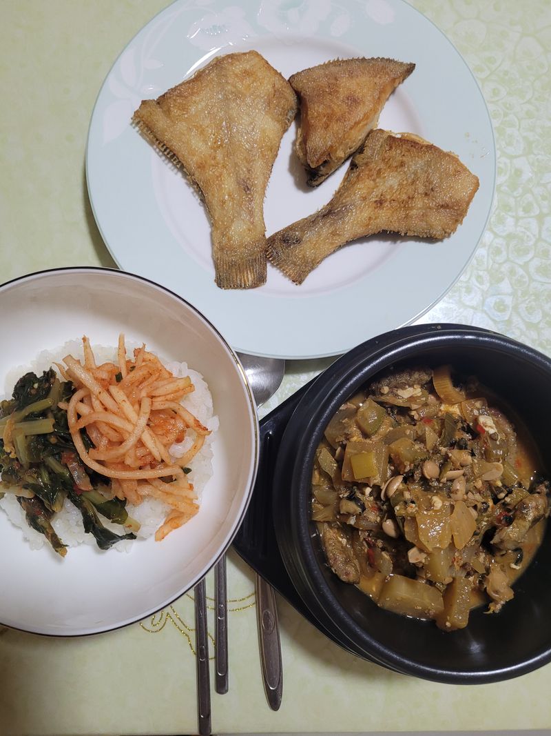 그래도 식탁이 허전해 보여 가자미 구이로 좀더 풍성한 식탁을 만들어봤어요...