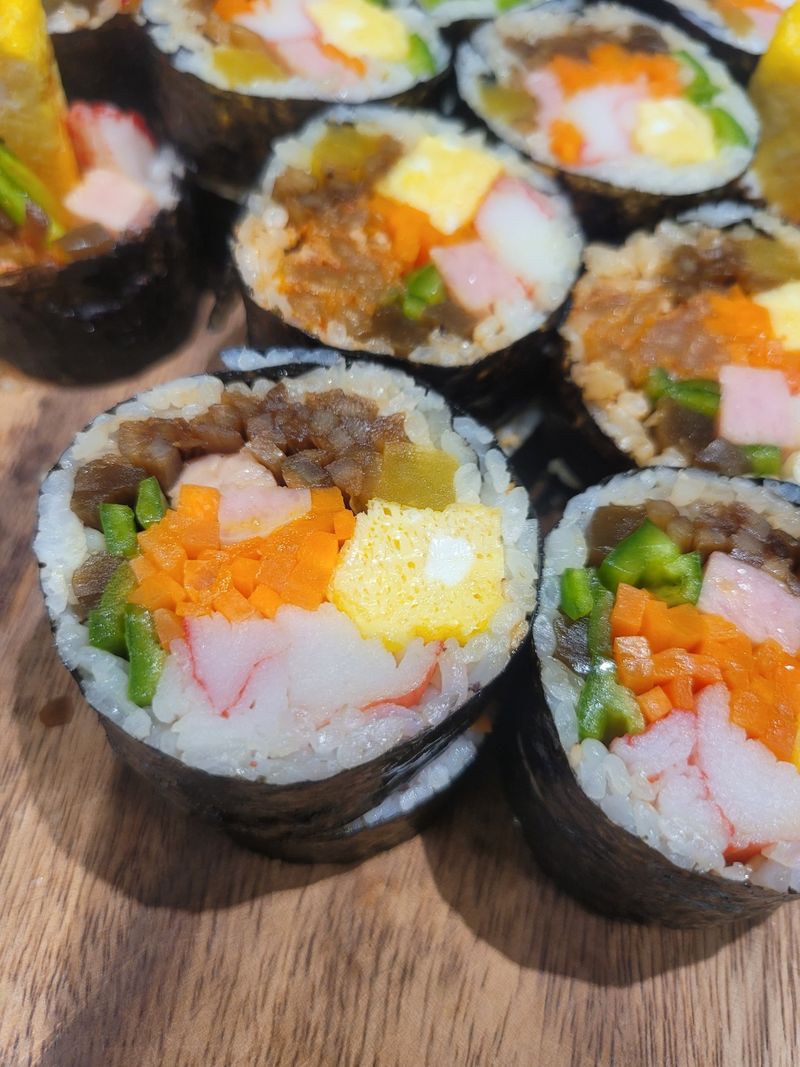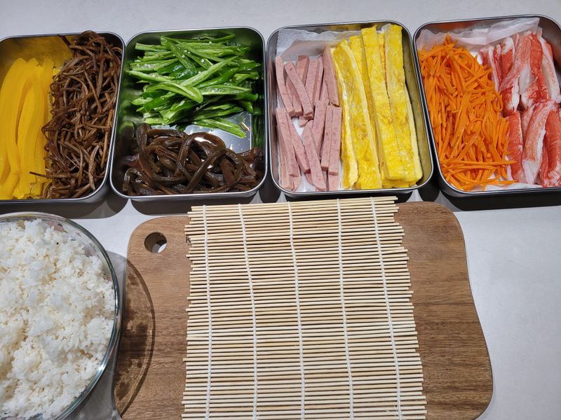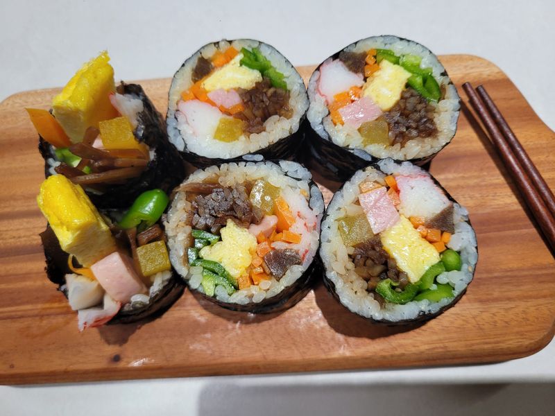 텃밭에 고추가 넘 많이 달려서 고추지도 담그고 별별 요리를 다해먹다가 오이고추 비타민도 풍부하다길래 김밥에 오이고추 많이 넣고 싸봤네용~ ^^ 궁채지담궈둔거랑 우엉도 껍질벗기고 채썰고 졸이고 손이 많이 가지만 넘 맛나게 먹어주는 가족을 위해 열심히 요리하게 되네요.