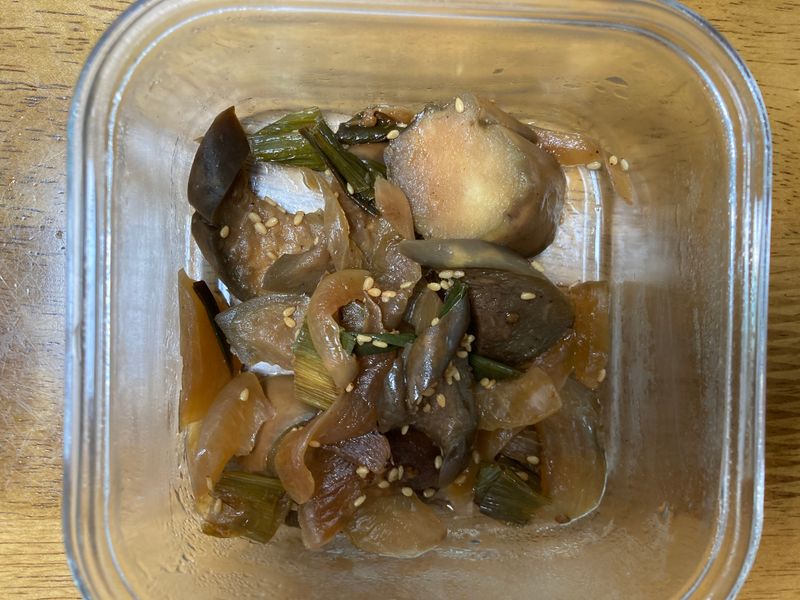 봄에 심어서 여름에 수확한 작물인 가지로 만든 반찬입니다. 사실 가지랑은 별로 안 친해서 평소에 잘 안 해 먹었는데, 이번에 만들어보니 생각보다 나쁘지 않고 맛있게 먹었어요. 사실 약간 겉이 쭈굴한 상태인 가지였는데, 속 안은 다행히 괜찮았어요.