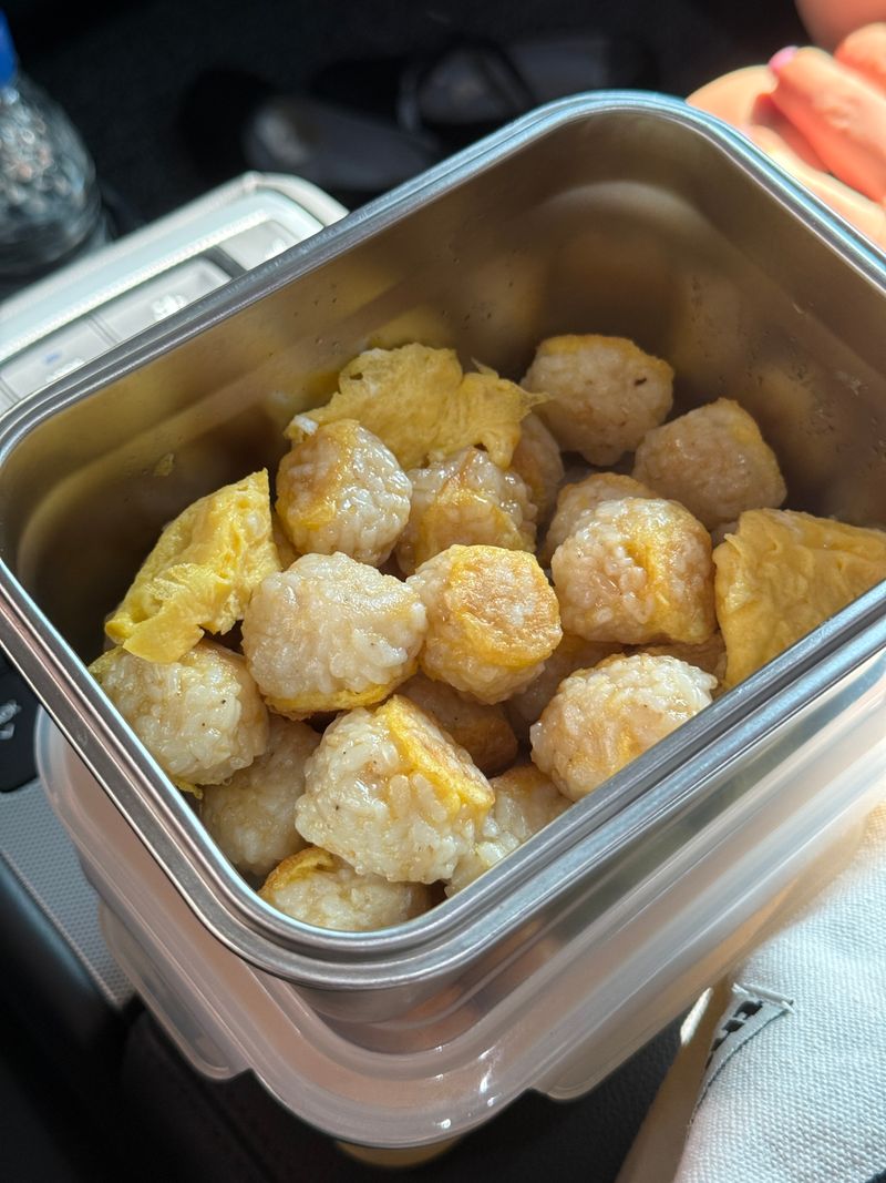 저는 미리 전 날 저녁에 밥알만 굴려놓고, 달걀물 묻히고 굽는 건 아침에 했는데도 맛있었어요!