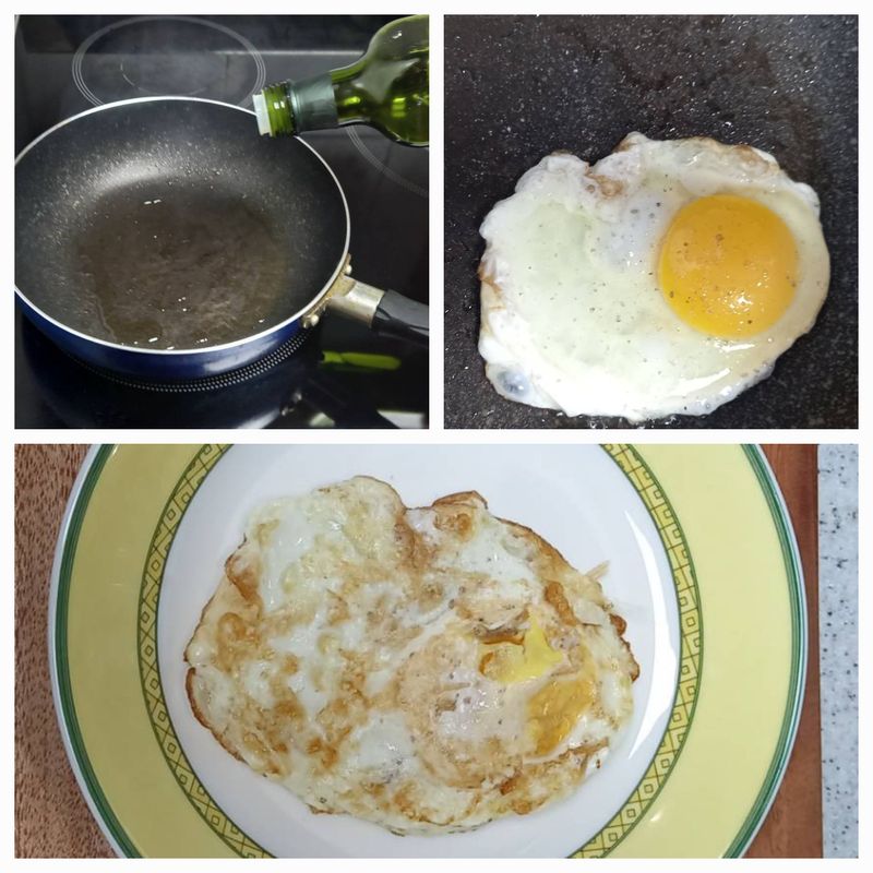 1. 팬에 기름 두른다 2. 팬이 좀 따뜻해지면 계란 깨서 살살 놓기 3. 소금 솔솔 뿌리기 4. 익으면 뒤집기 5. 2분쯤 노려보기 6. 완성!