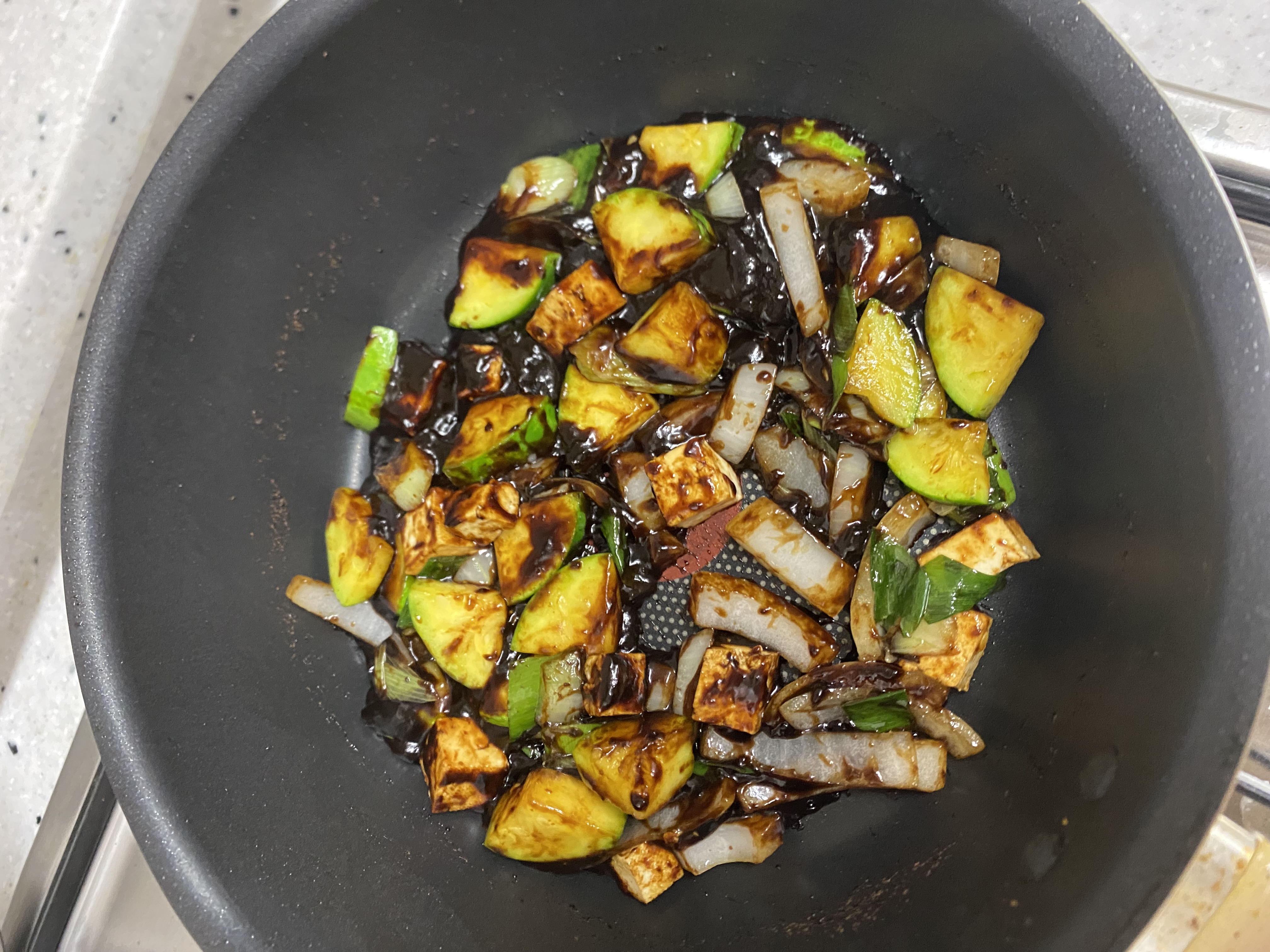 얼마 지나지 않아 애호박이 타는 것 같아 급히 두부를 넣고 짜장소스를 부었다. 애호박이 다 익었는지 모르겠는데 타는 냄새가 나서 불을 껐다. 평소 같으면 전자레인지에 짜장소스만 데워 밥에 비벼 먹었겠지만, 오늘은 직접 손질한 재료들이 있어서 훨씬 풍부한 맛이 났다.