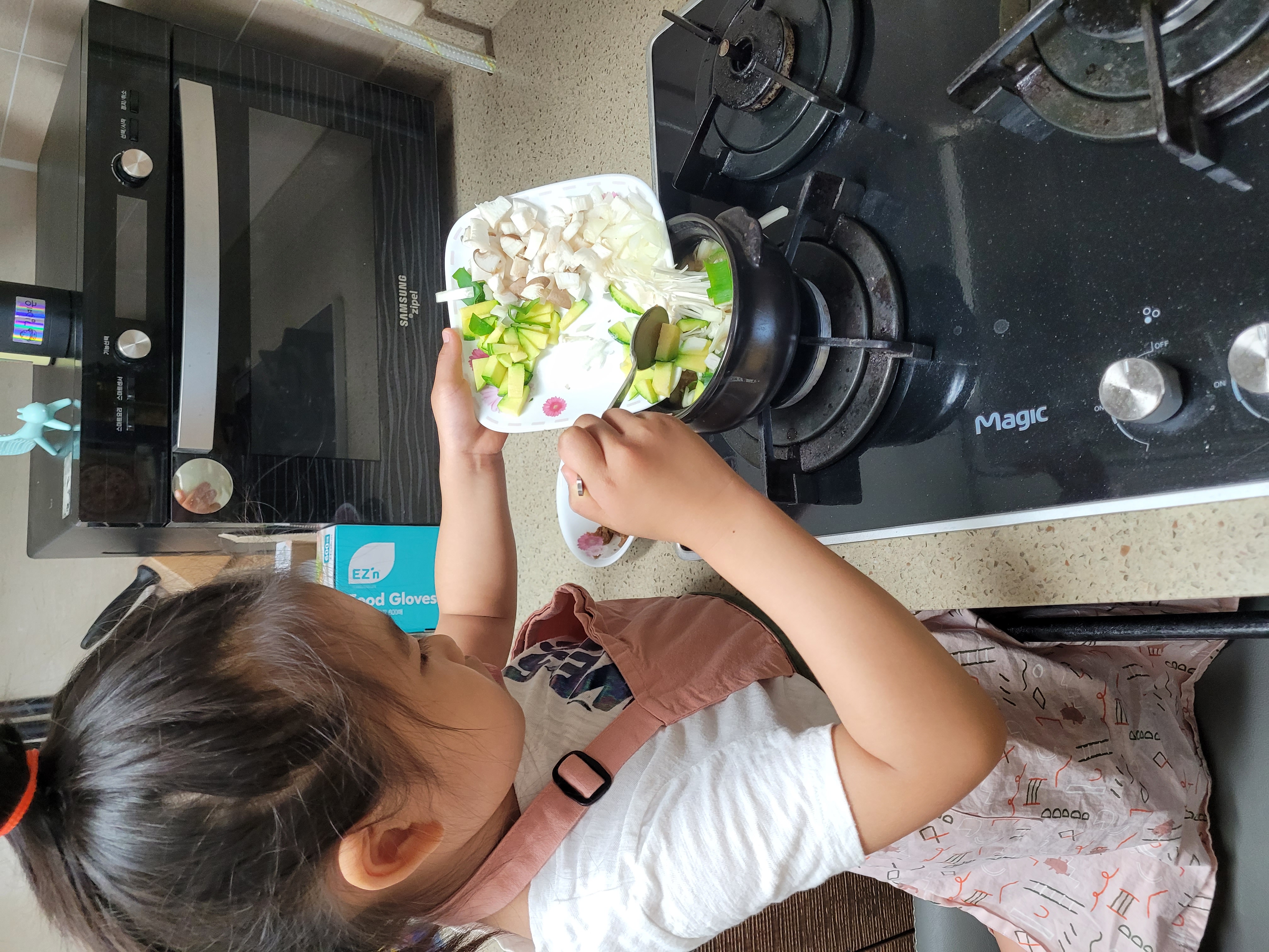 어린이가 직접 1인분 만들어서 먹나봐요 귀여워요!!