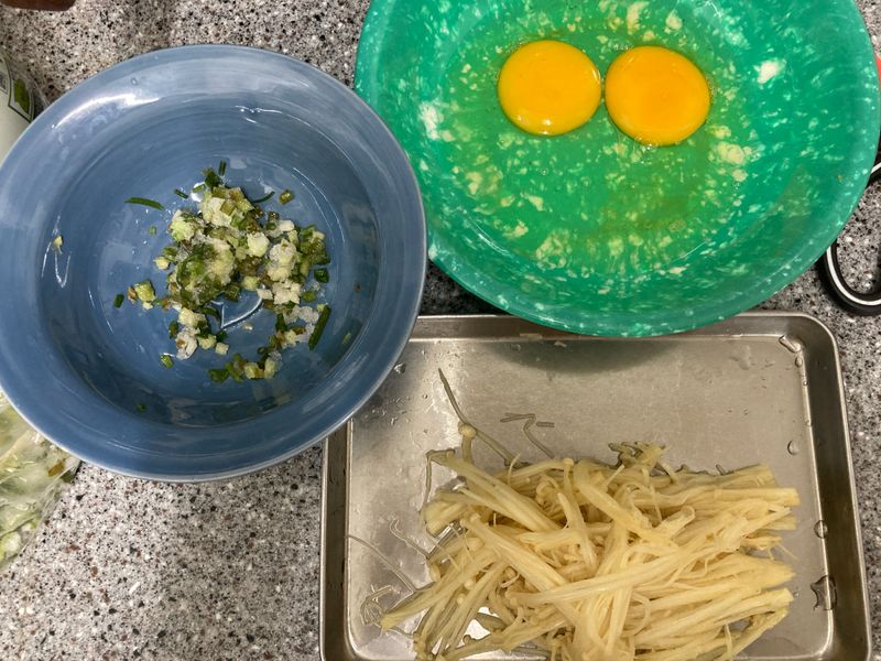 팽이버섯전은 조금 생소했는데 한입크기로 부침? 동그란땡같이 만든 기억은 있었다.
