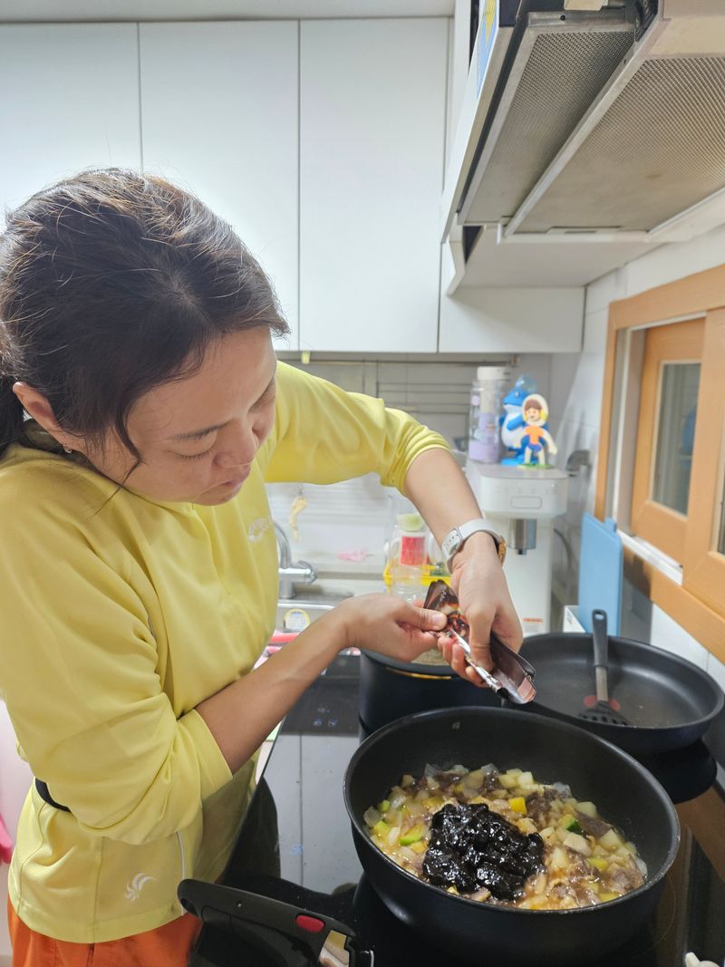 그래도 짧은 시간안에 간편하면서도 맛있는 요리가 뚝딱 나오니 그동안 못한다는 핑계로 너무 손 놓고 살았다는 생각도 들고..시간 없다는 핑계로 완제품 사서 돌려먹던 과거를 반성하는 시간도 되었어요. 아빠가 만든게 더 맛있다고 말하는 솔직한 딸이지만 맛을 떠나서 가족을 위해 요리해준 엄마의 모습을 기억해주길 바라며 짜장,카레,마파두부까지 다 만들어서 먹어보았습니다. 덕분에 외식비용도 줄일 수 있어서 최고였어요!!!