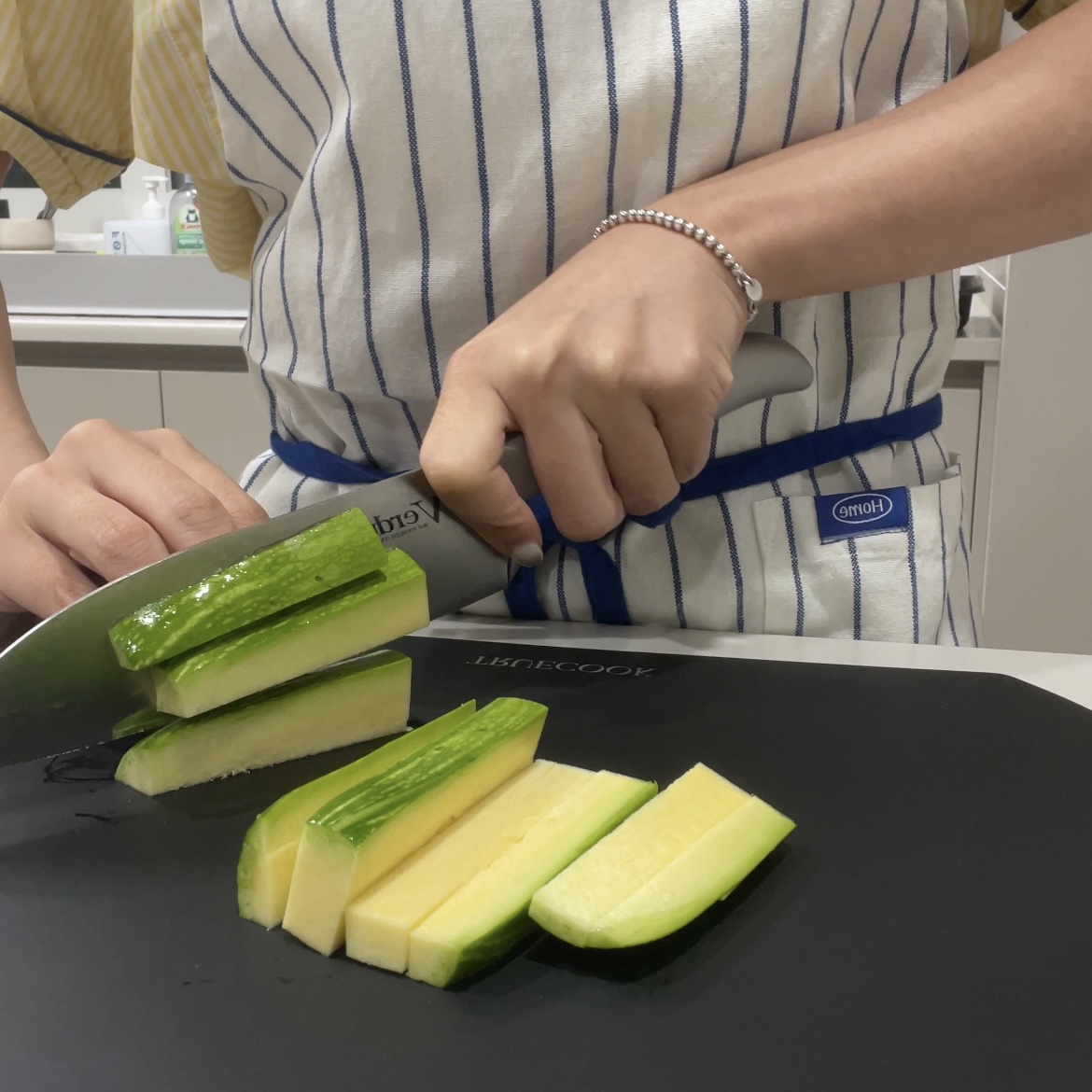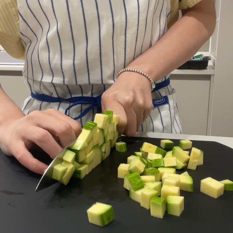 애호박과 양파 모두 손질이 쉽지 않은 재료인데, 천천히 집중하면서 예쁘게 썰어내신 게 느껴져요💛
