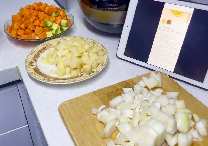 새미네 부엌의 '요리초보 가이드' 페이지를 아이패드로 보면서 칼질을 했는데