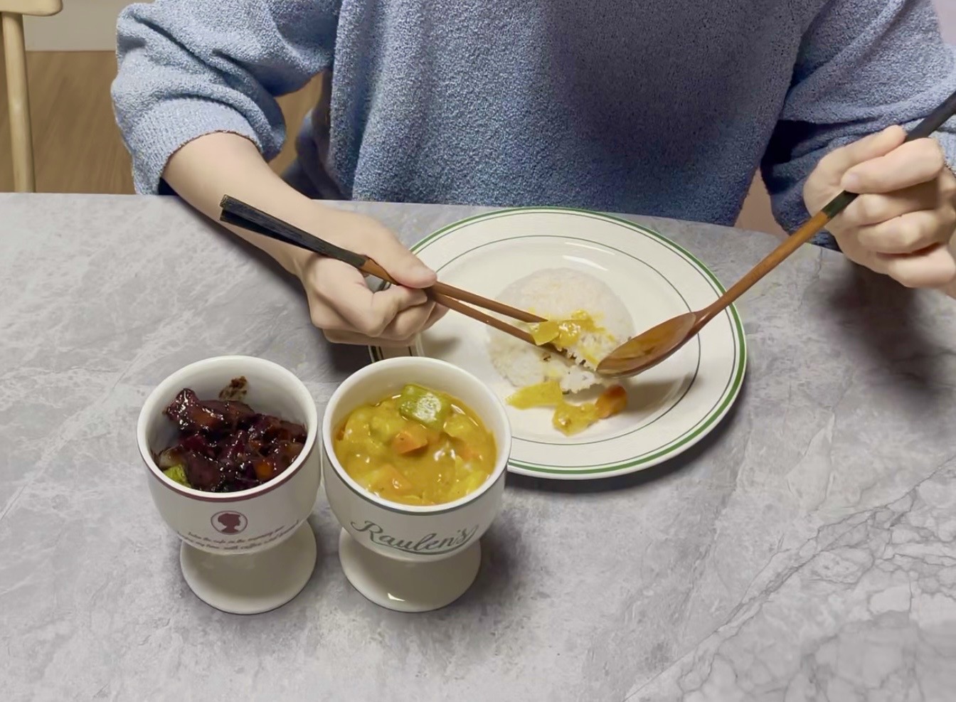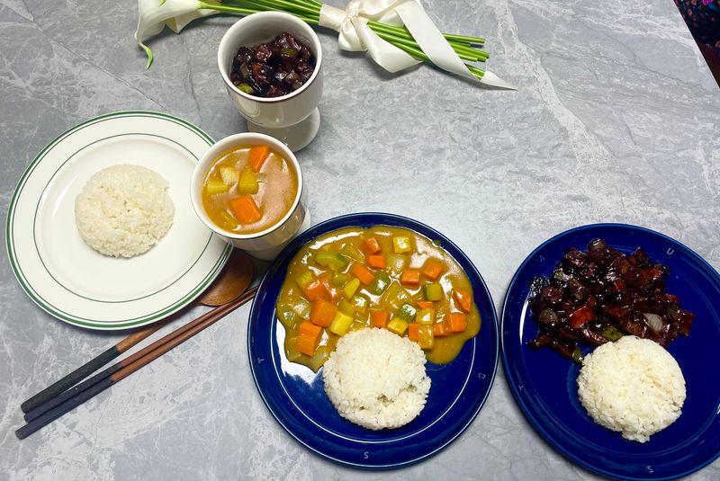 저희의 첫 합작 요리인 "커리" 와 "짜장" 을 만들었습니다.