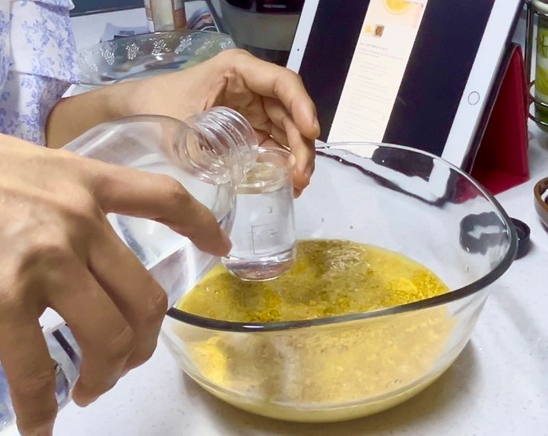 재료들이 어느 정도 익고나서 각 후라이팬에 재료들을 반으로 나누었습니다.