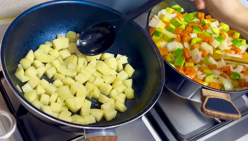 나머지 하나에는 감자를 볶았습니다.