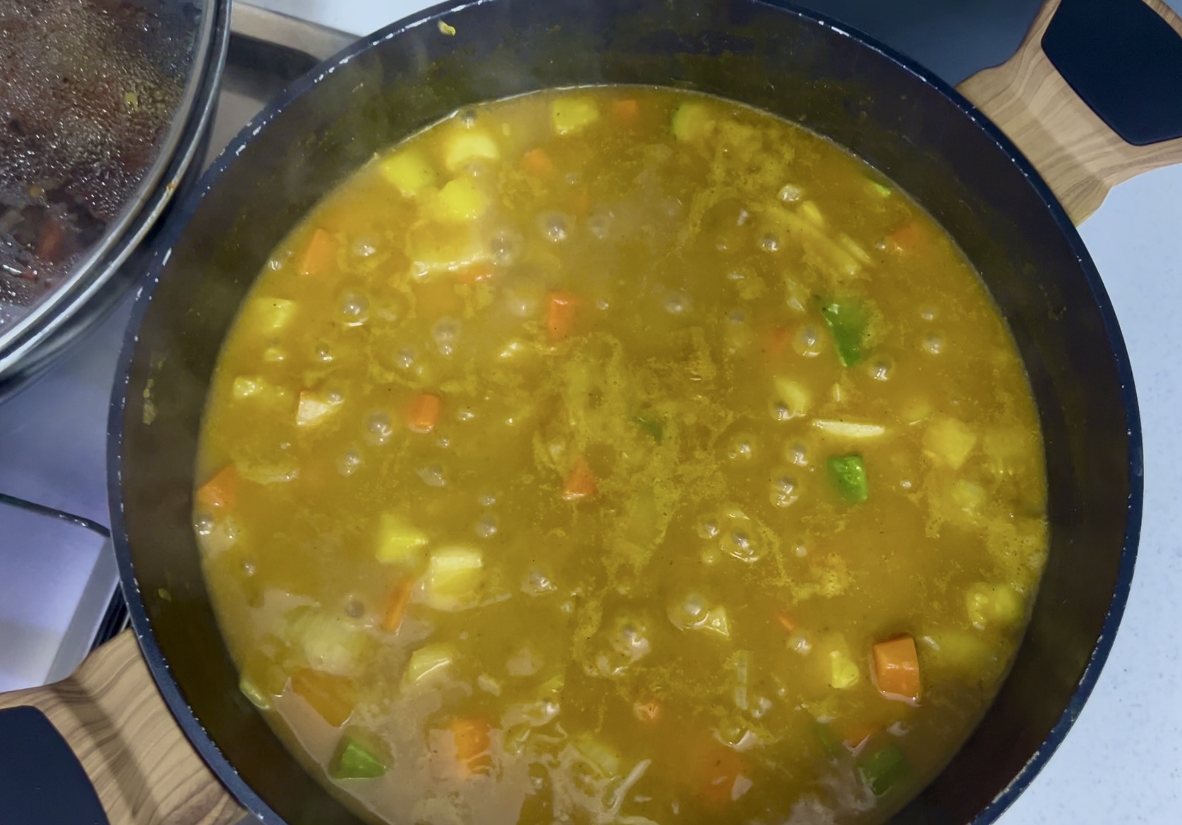 저희 가족은 고기가 들어있지 않은 야채 커리, 야채 짜장을 좋아해서 고기 없이 당근, 호박, 감자, 양파를 넣고 만들었습니다.