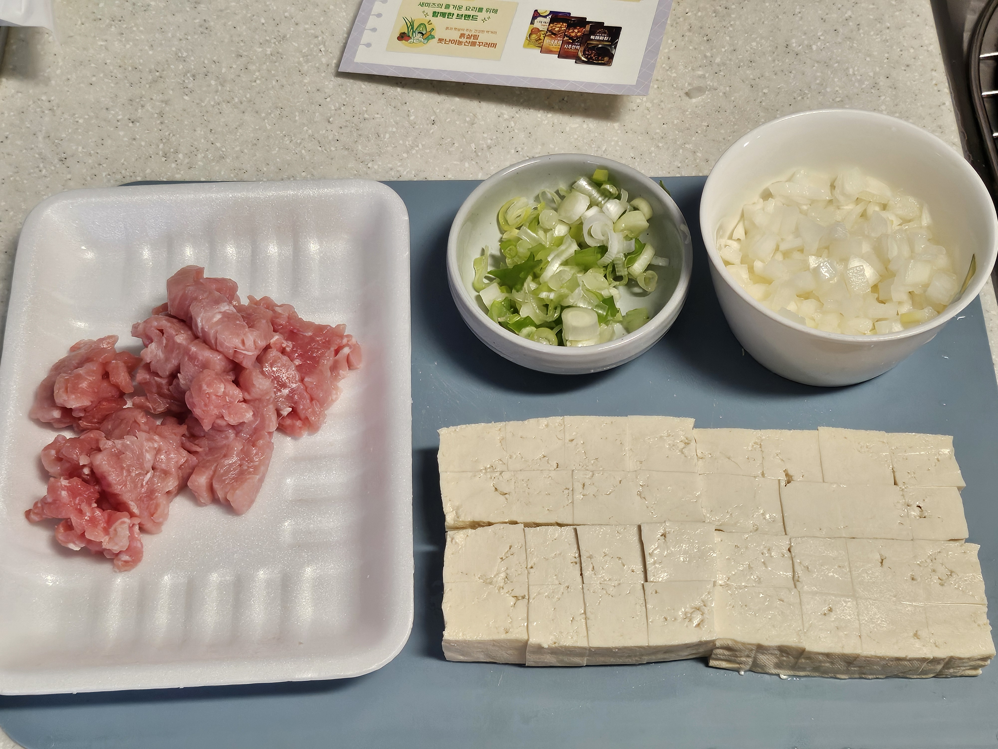 오늘은 마파두부&애호박 전을 만들기 위해 재료를 손질해 보았습니다.