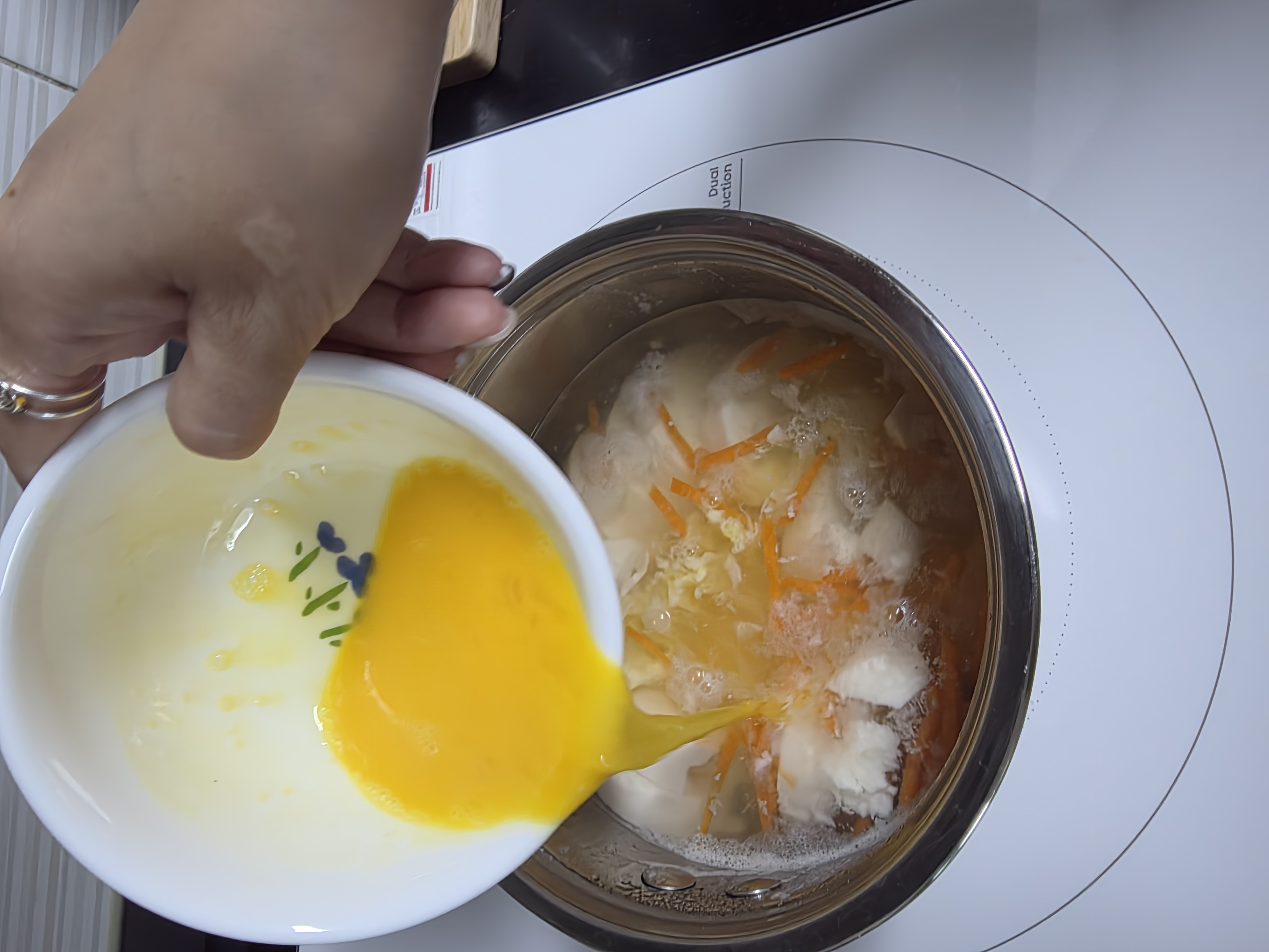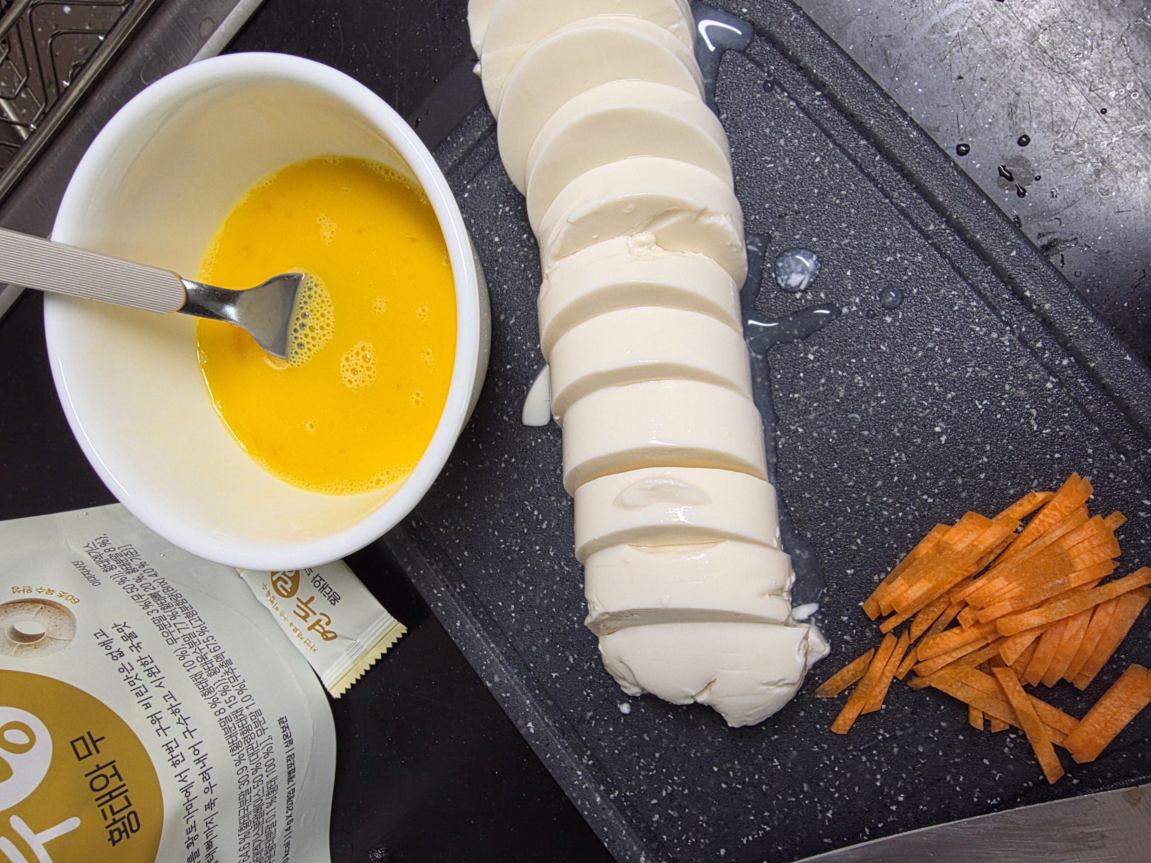 순두부는 일정한 크기로 자르고, 계란 2개는 풀어주기